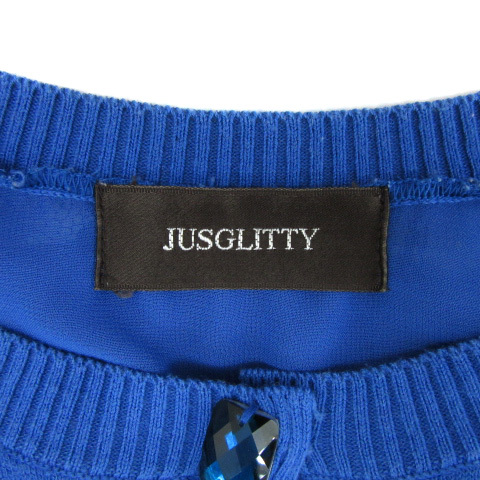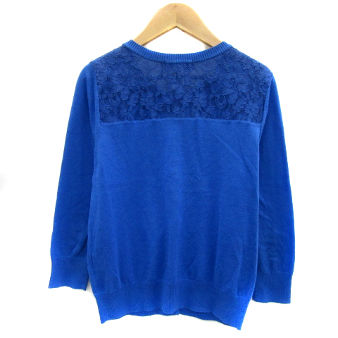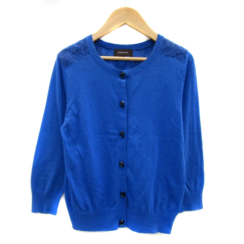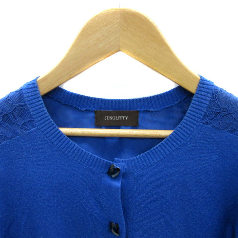 ジャスグリッティー JUSGLITTY ニットカーディガン ショート丈 七分袖 ラウンドネック 無地 レース 2 青 ブルー /YS20 ■MO レディース