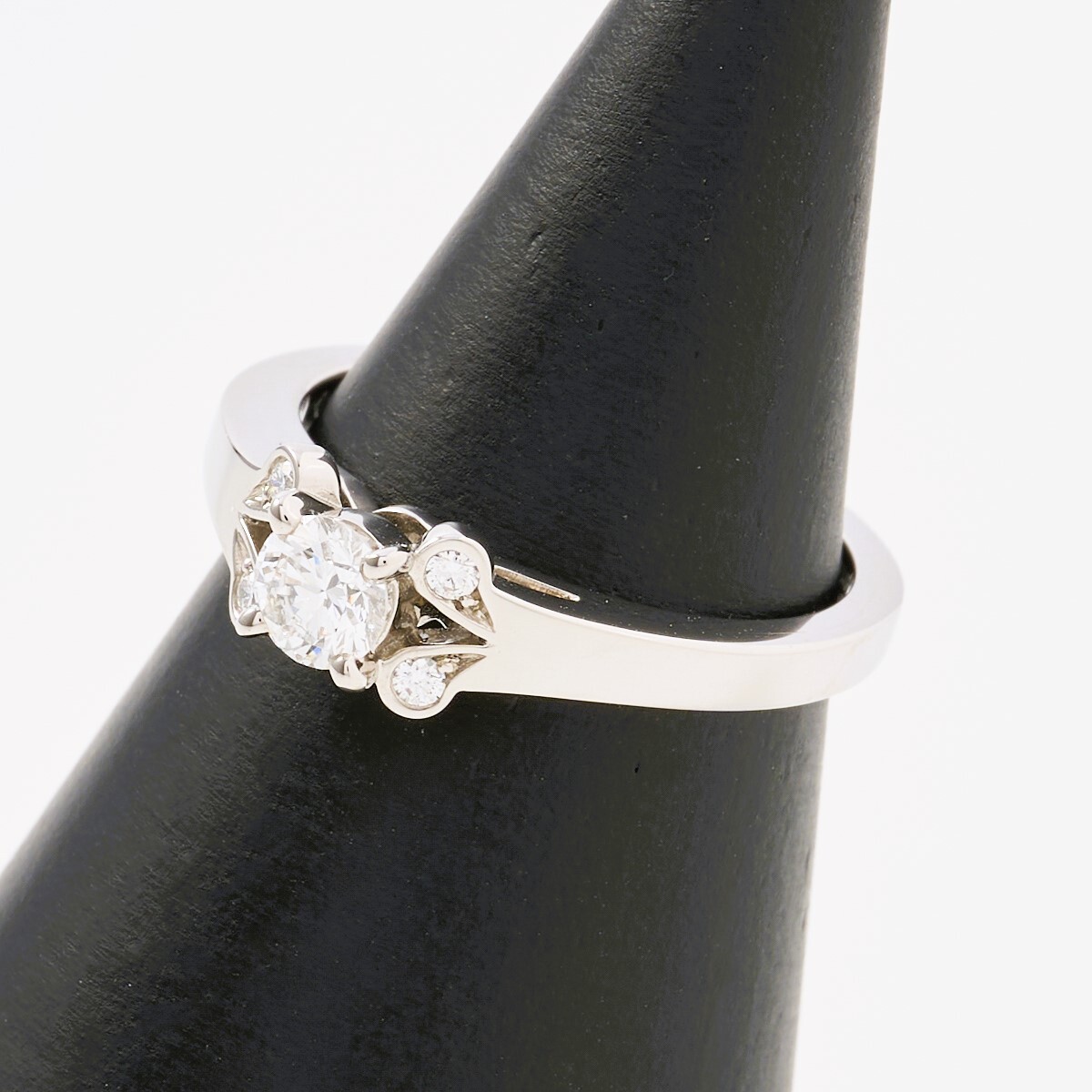 ダイヤモンドのバランスのとれたセッティングにより、繊細で女性らしい