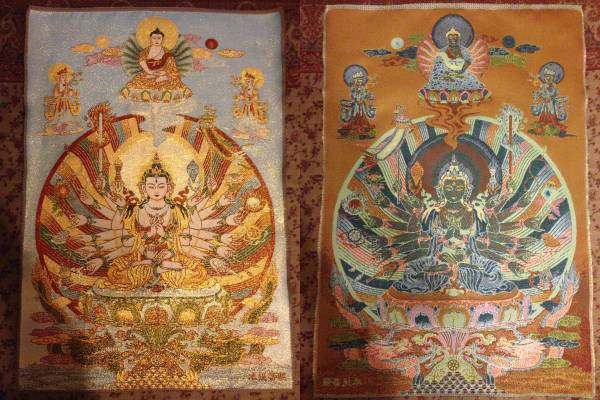 卍絹織物 『准胝仏母観音』 チベット仏教 真言 曼荼羅 仏画 | ||||