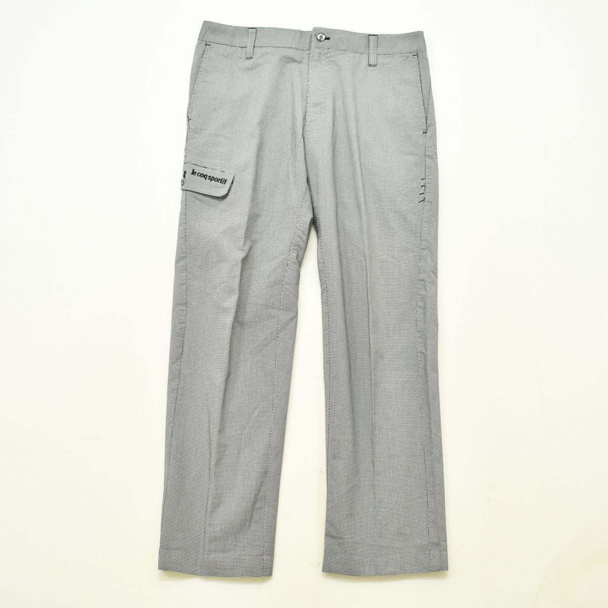 ★カジュアル 古着 ルコックスポルティフ LE COQ SPORTIF スラックス 88 千鳥格子柄ネイビーxブルー 総柄 ノータック ゴルフ スポーツ★