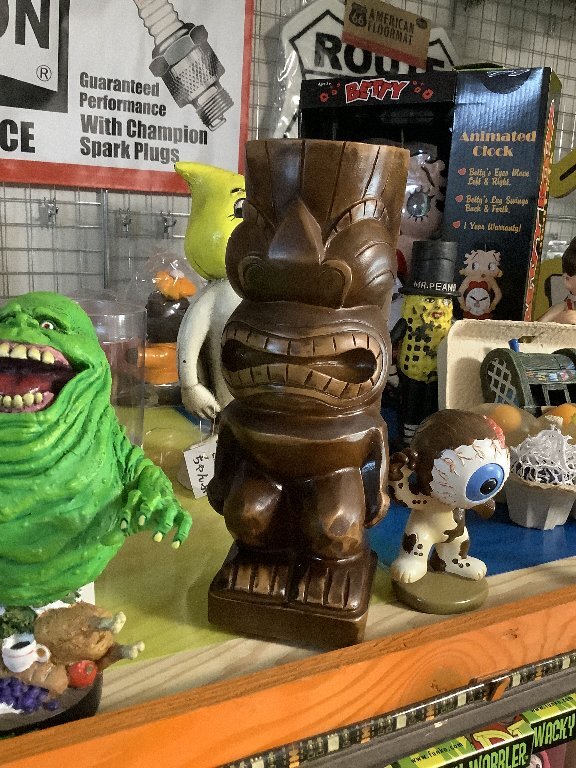 【102113】ハワイの妖精や、歴史的な神のシンボルなどをモチーフにしたレジン素材のコインバンクです。ハワイな雰囲気のインテリアに、インパクト大です。。素材 レジンサイズ 本体W9xD8.5xH23.6cm (外箱 W13xD12xH28cm)