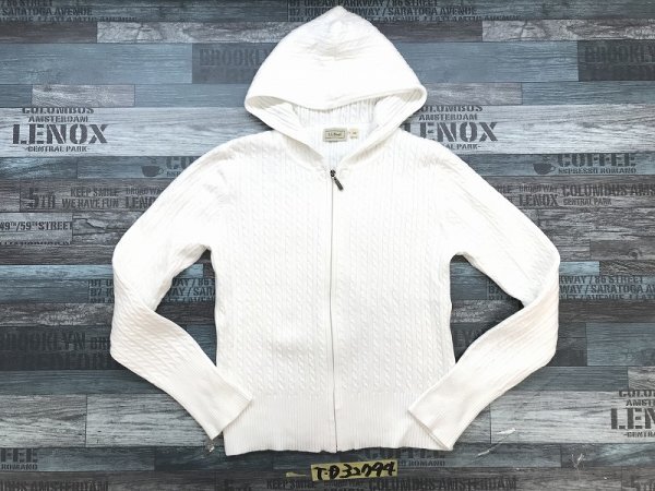 L.L.Bean エルエルビーン レディース ケーブル ニット ジップ フーディー ジャケット 白 です。