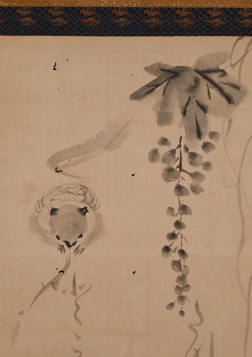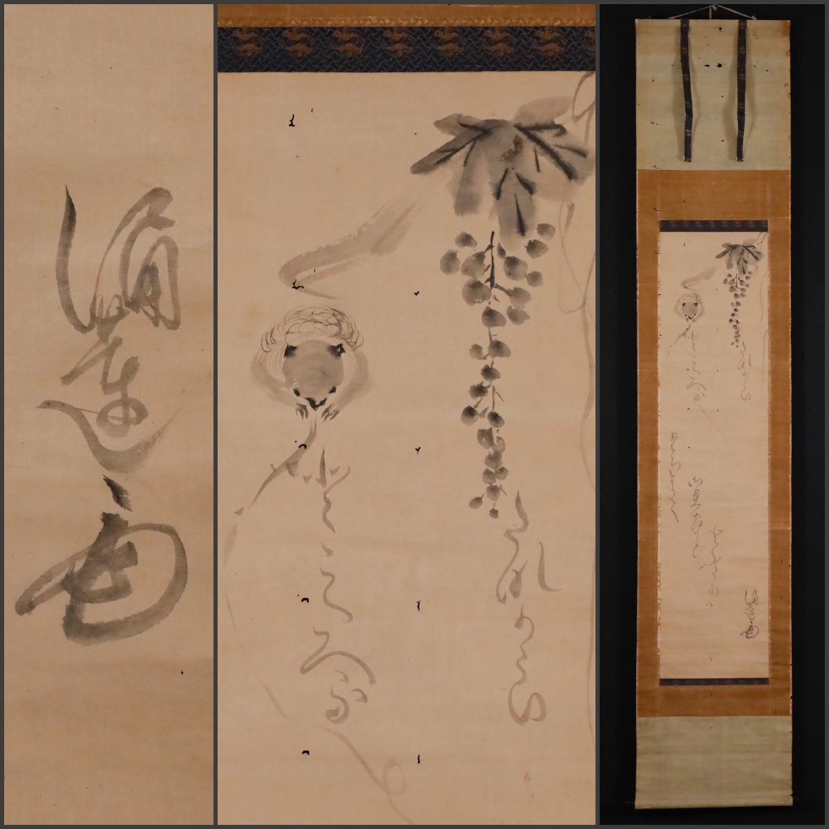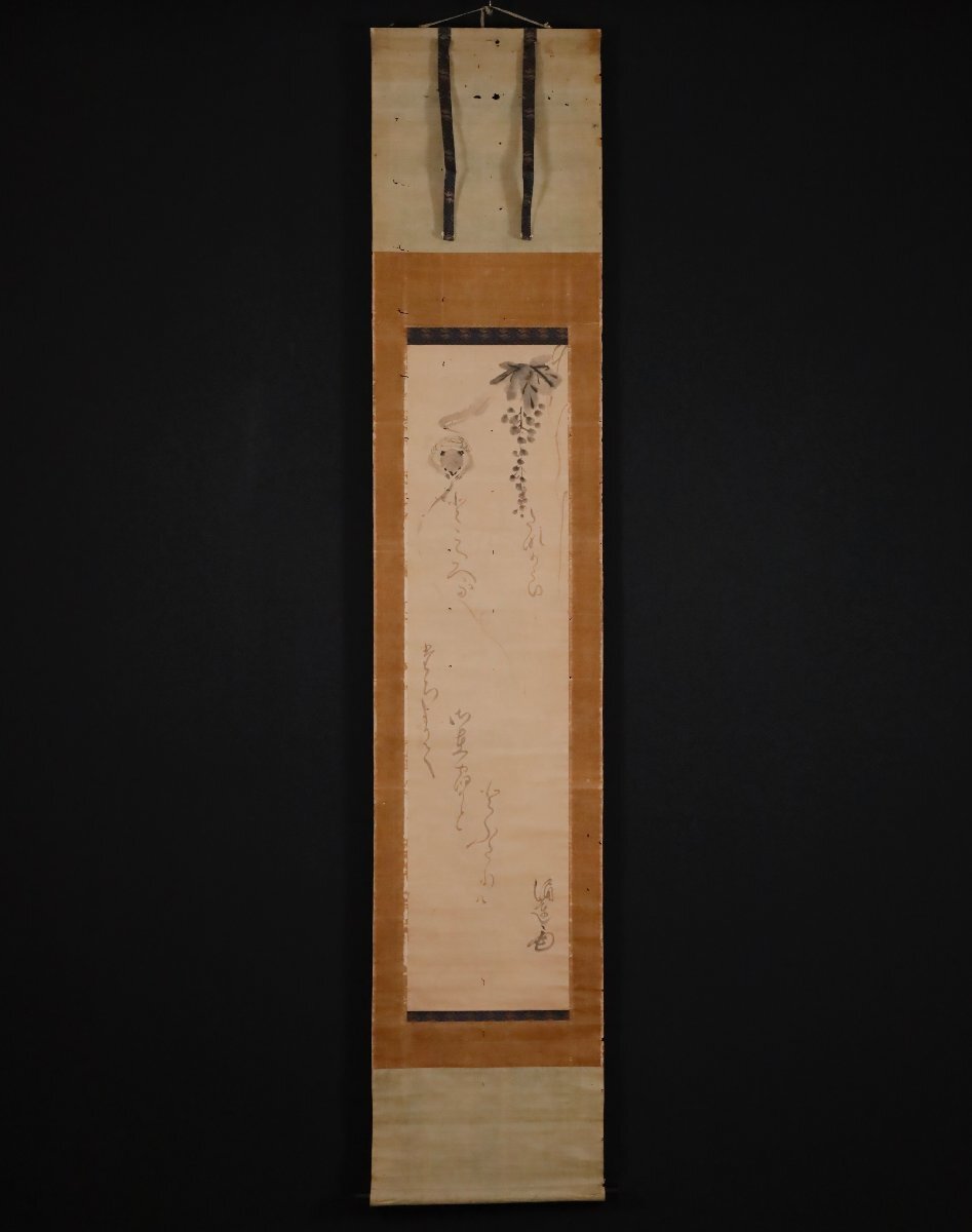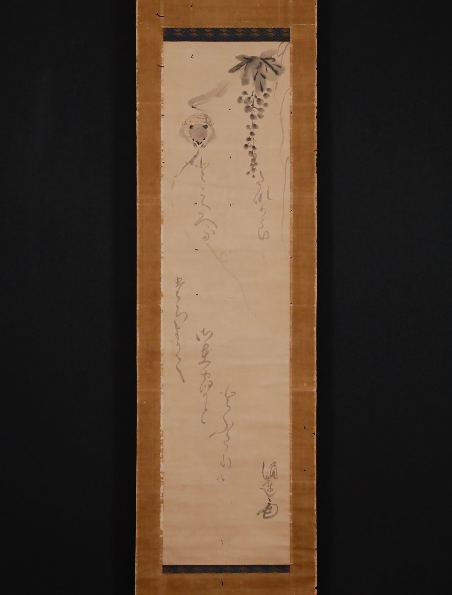 【模写】吉】10528 涌蓮 慧亮 葡萄と栗鼠図 冷泉為村師事 歌人 真宗高田派 澄泉寺 仏教 伊勢 三重県 書 茶掛け 茶道具 掛軸 掛け軸 骨董品