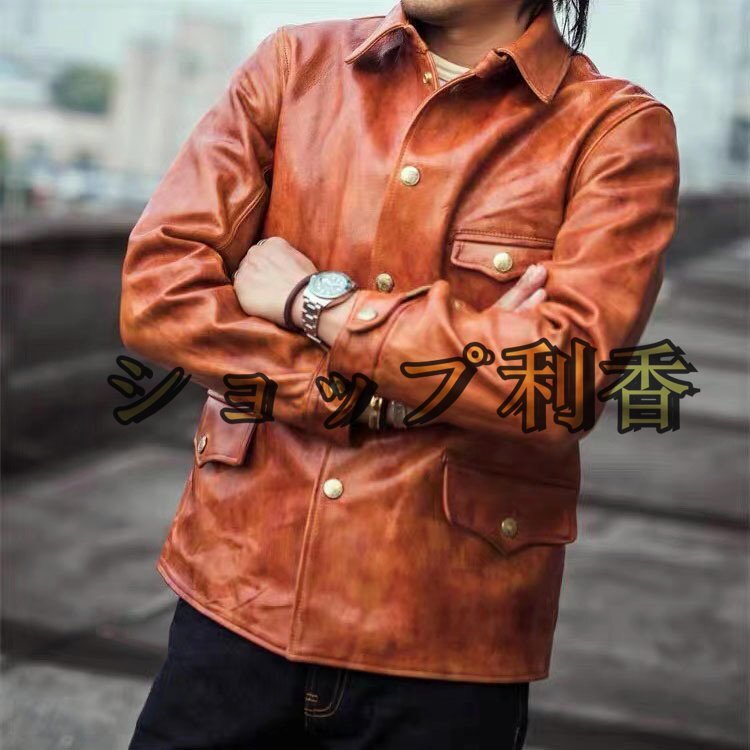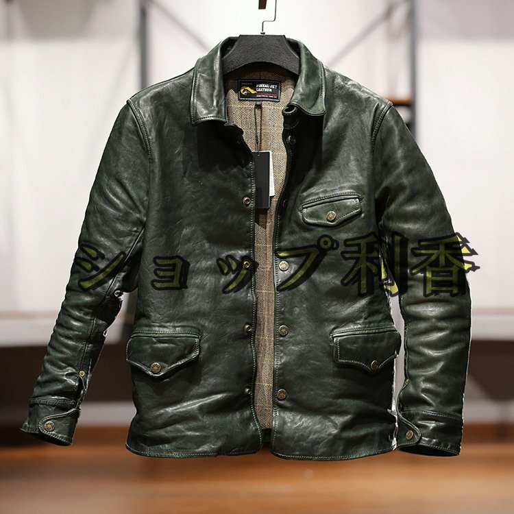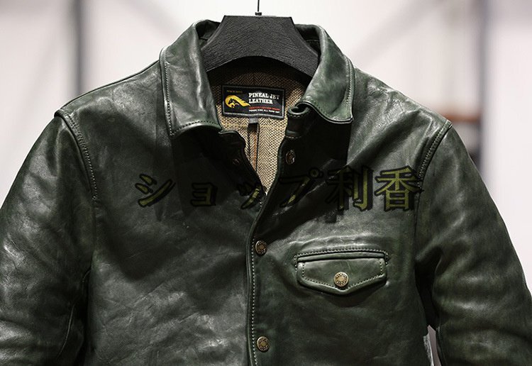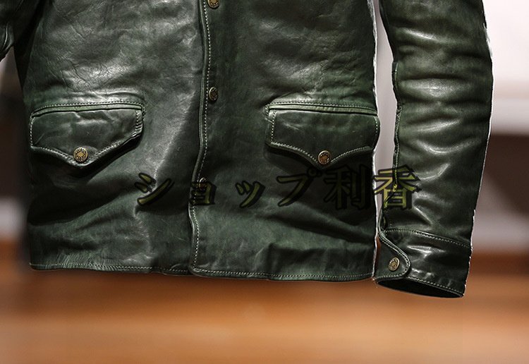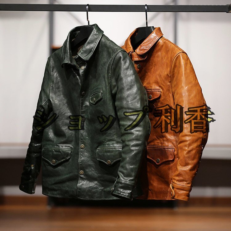 ブレーキマン 馬革 植鞣し ホースハイド レザージャケット コート 男女兼用 本革 革ジャン ジャンパー アメカジ レトロ M~3XL グリーン
