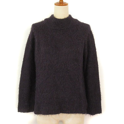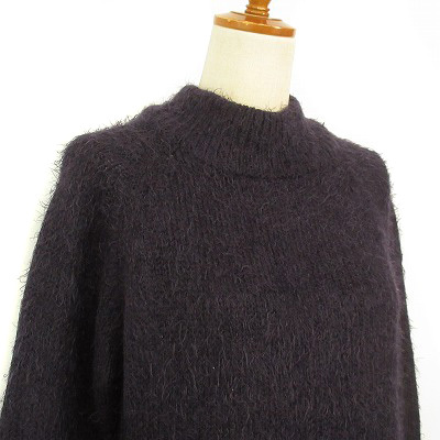 メルローズ クレール melrose CLAIRE ニット シャギー プルオーバー ボトルネック 長袖 紺 ネイビー レディース