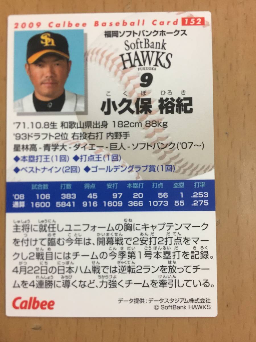2009年カルビープロ野球カード・152・小久保裕紀(福岡ソフトバンクホークス)