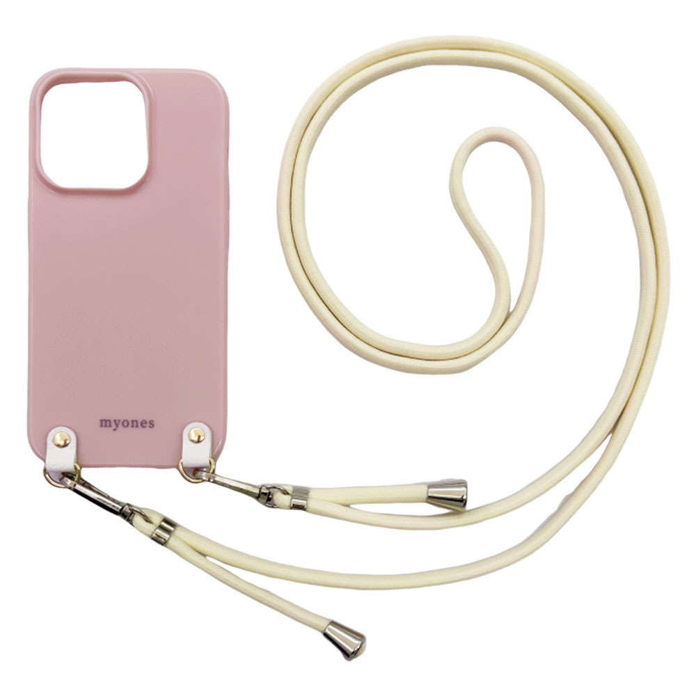 iPhone11(くすみピンク/アイボリー)ひも TPU ストラップ 肩掛け 首かけ 斜めが スマホケース かわいい