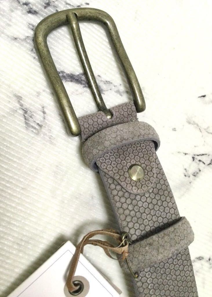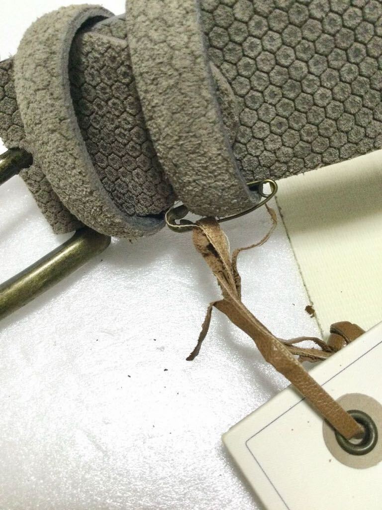今回出品致しましたのは、“1709”、落ち着いたカラーに染色された、ハニカム紋様が刻印されたスウェードレザーのベルトになります。