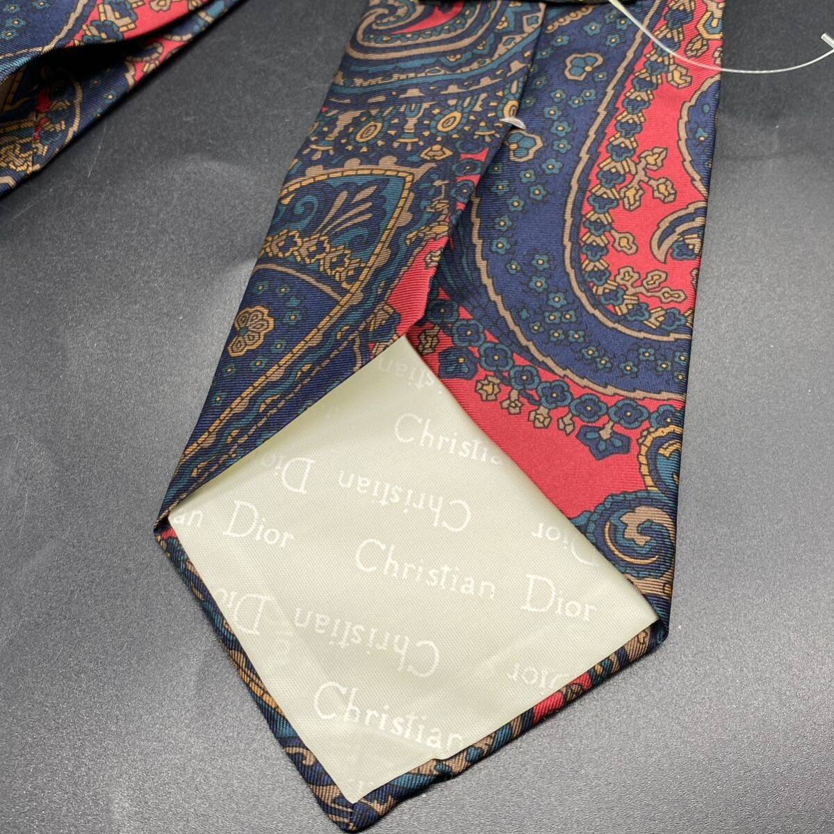 Christian Dior クリスチャンディオール ネクタイ ペイズリー レッド ネイビー no.94