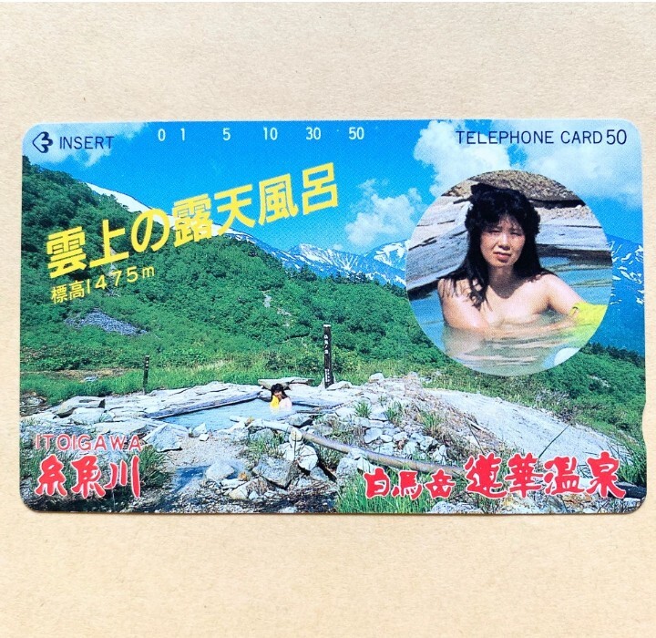 【未使用】 温泉テレカ 50度 白馬岳 蓮華温泉