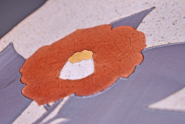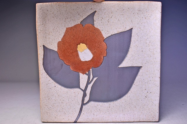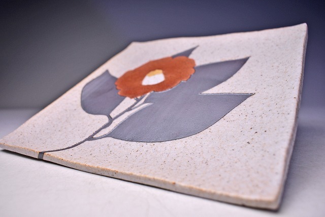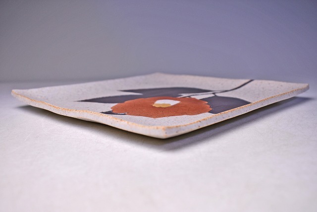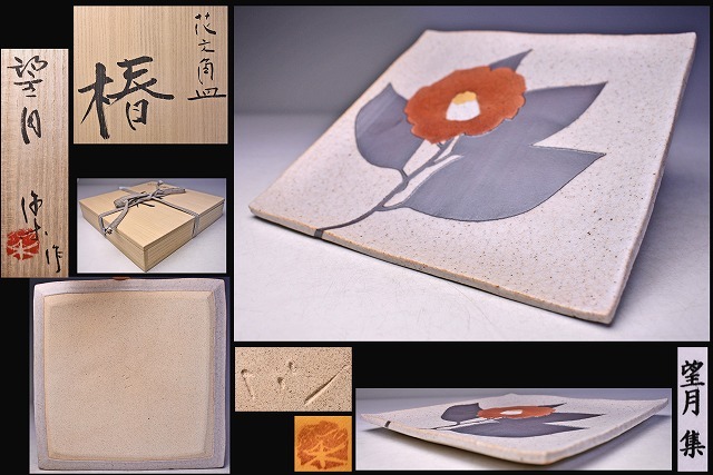 サイズは 243mmx242mmx高さ21mm です。 東京芸大出身 の 人気陶芸家 望月集 氏の 作品です。 迫力ある 椿文が 印象的な作品です。 宅配便80サイズにて発送します。 他にも多数出品してます。同梱対応いたします。