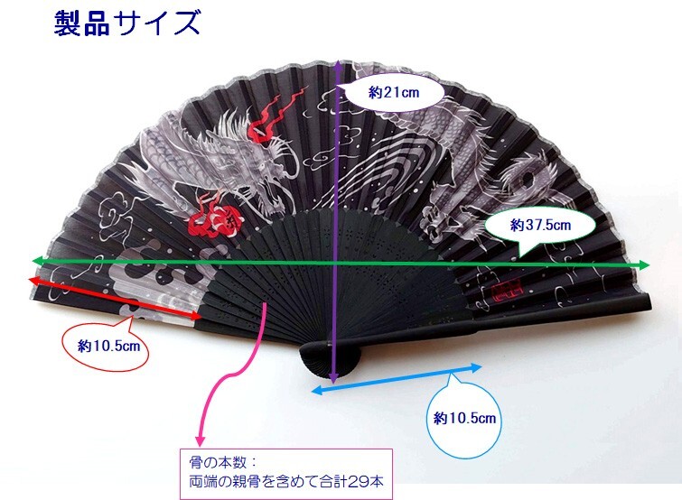 ■本体サイズ(扇を広げた状態): 高さ210mm×幅375mm ・重量: 25g ※詳細は商品案内画像をご覧ください。