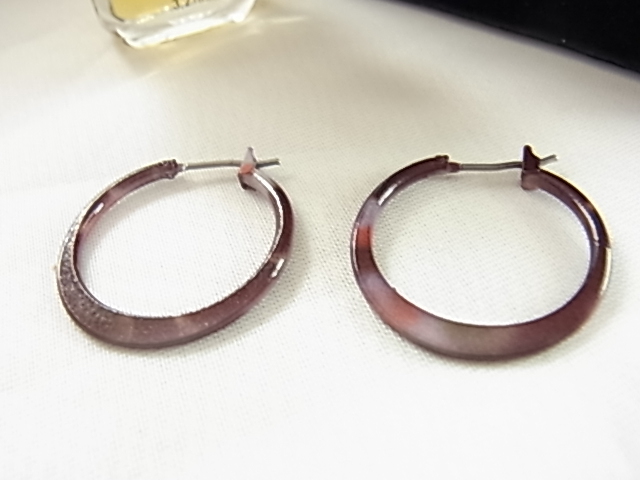 ビンテージ/ヴィンテージ パープルトーンの混ざったようなミックスカラー 和モダンテイスト 輪っか フープデザイン ピアス▽
