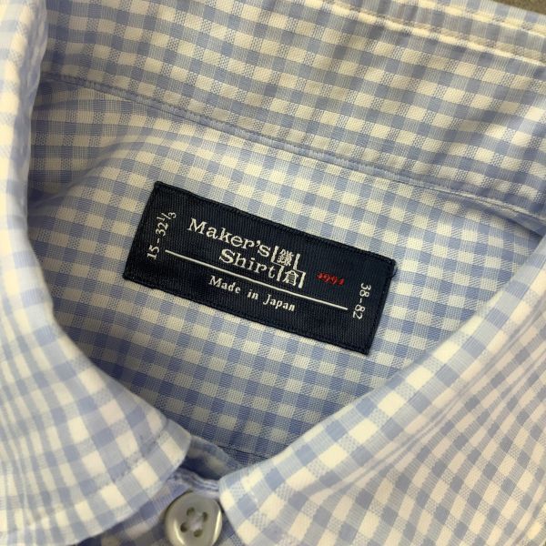 Maker’s Shirt メーカーズシャツ 鎌倉シャツ ギンガムチェック 長袖 ボタンダウンシャツ メンズ ブルー 38-82 15 32 1/3