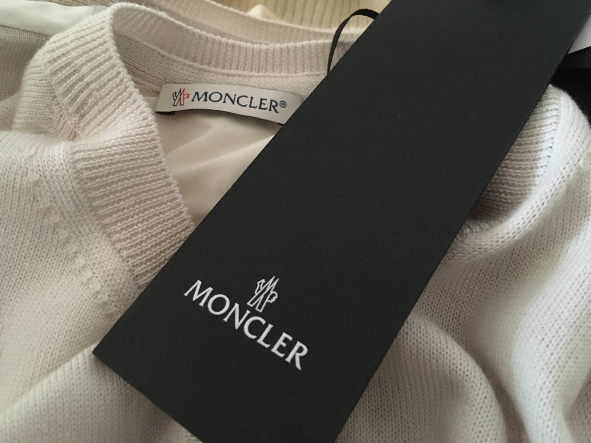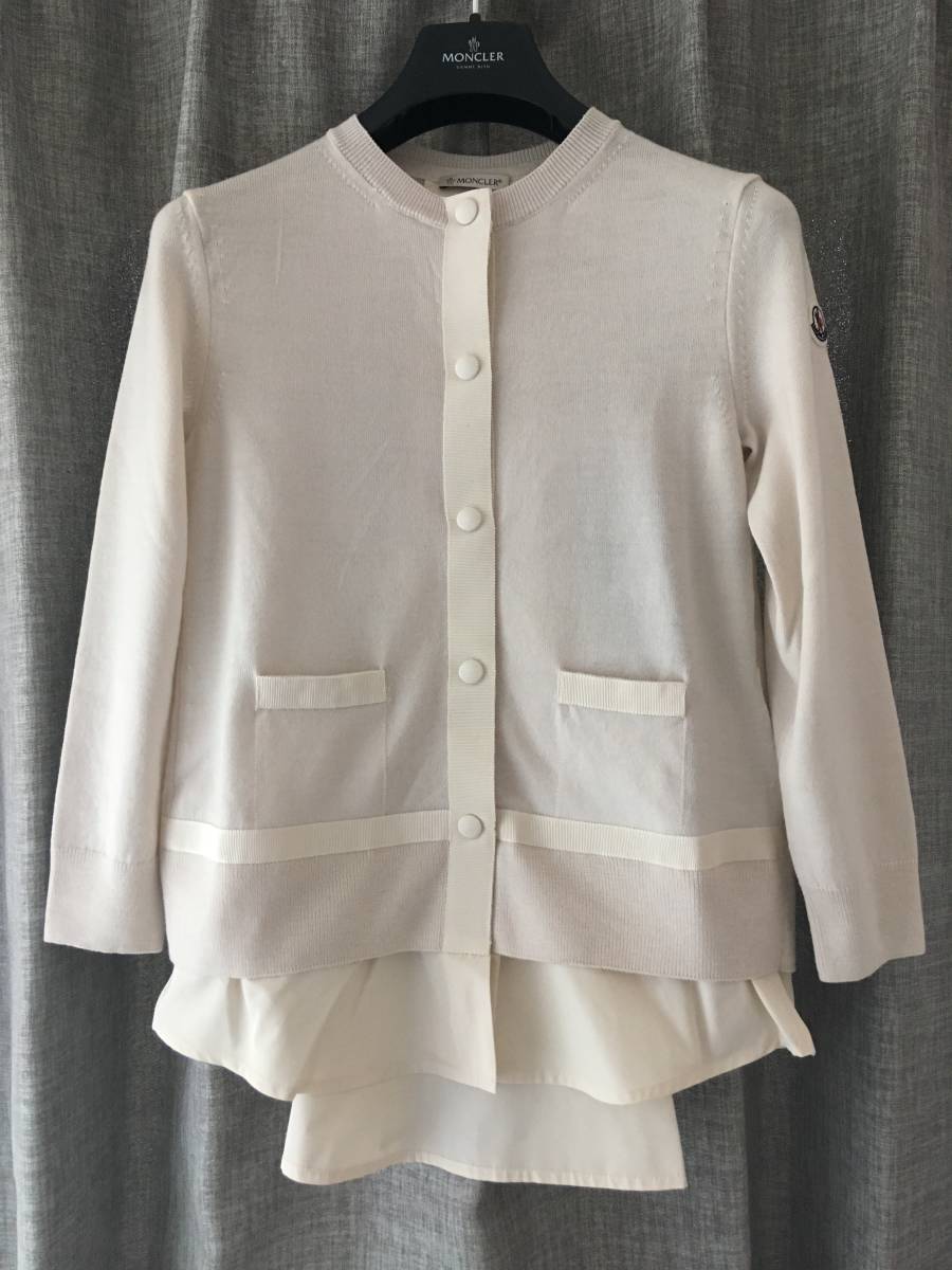 新品 本物 モンクレール ヴァージン ウール 異素材 ドッキング ニット カーディガン S ベージュ MONCLER セーター トップス ロゴ ワッペン