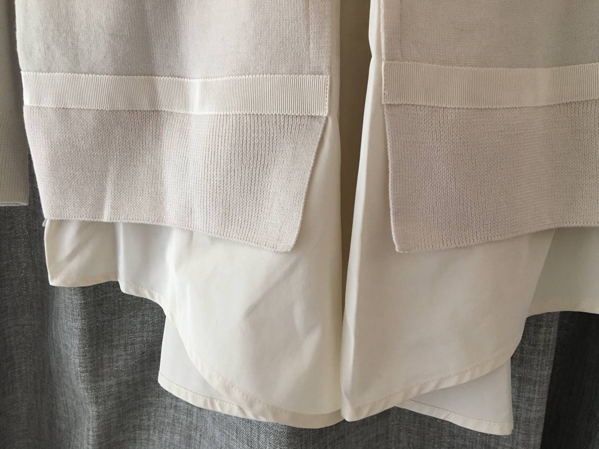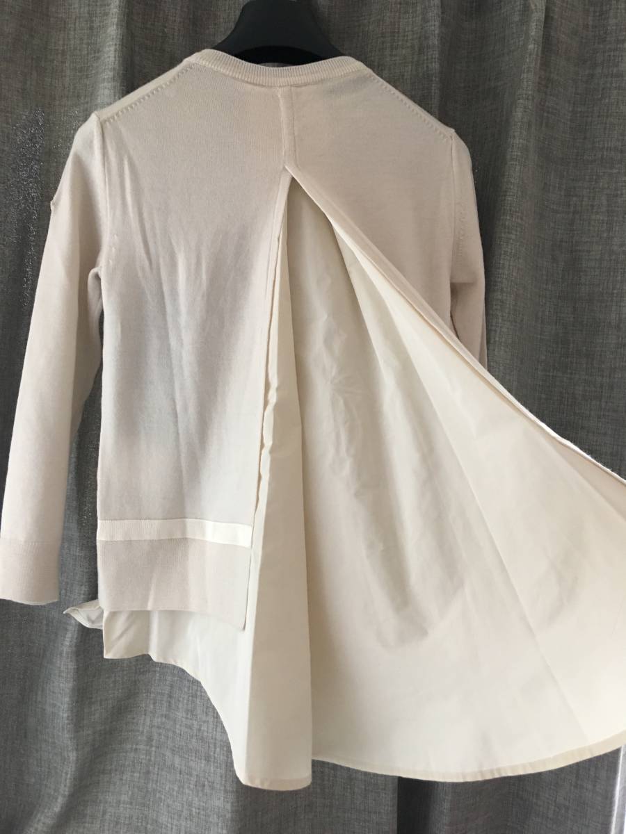 ヴァージンウール素材の肌触りの良い薄手のニットに、バックや裾部分がポリエステル生地に切り替えになったデザインです。