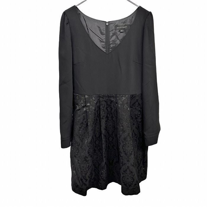 商品タイトル | JILL STUART ワンピース トップが薄手 裏地は袖無し スカートがアラベスク柄 長袖 ポリ×綿×ナイロン×ポリウレタン 2 黒 レディース |