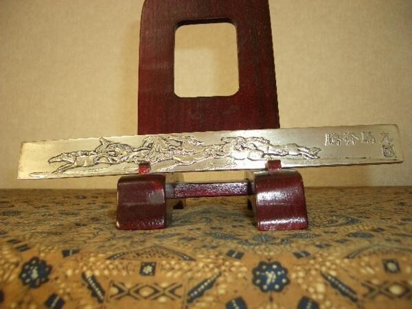 【商品説明】綺麗な逸品です。洋銀(純銀ではありません)製。皿立ては付きません。【サイズ】約23×2.5センチ【平成27年5月23日出品】
