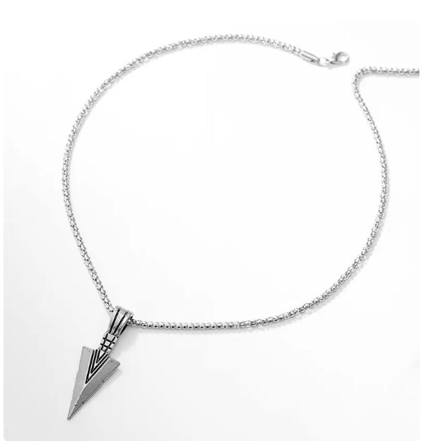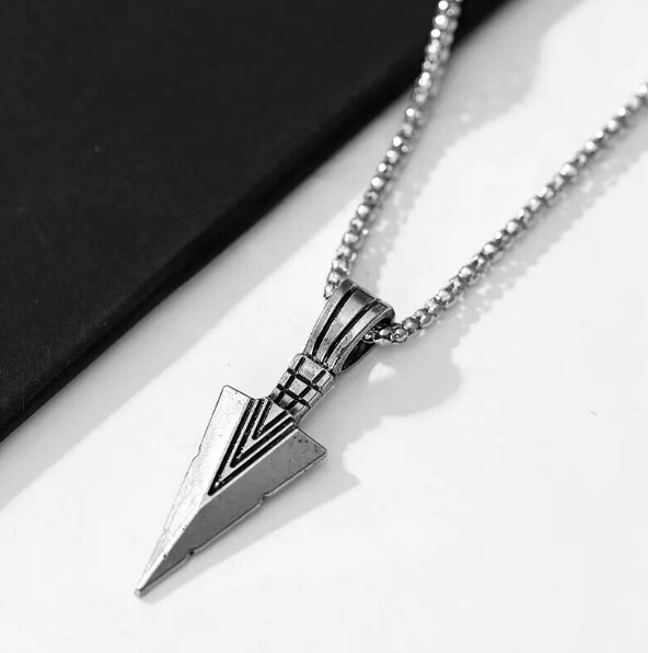 【ノーブランド】男性用ブラックシルバーカラー 槍ペンダントネックレス 男性用 ファッションメタルネックレスジュエリーギフト【silver】
