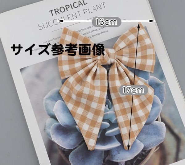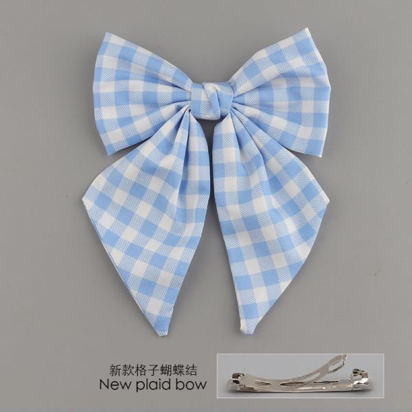 【国内発送】燕尾型チェックリボン ヘアアクセサリー スプリングヘアクリップ 2個セット ブルー