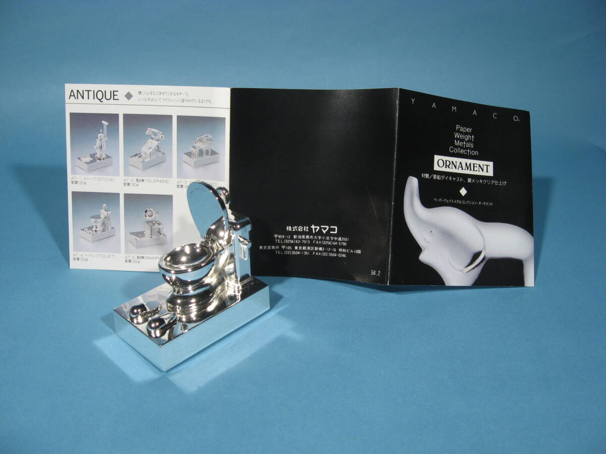 出品はご覧のヤマコ ペーパーウェイト メタルコレクション・オーナメント アンティーク AT-4 トイレ 銀メッキクリア仕上げ、カタログ、外箱のみです。