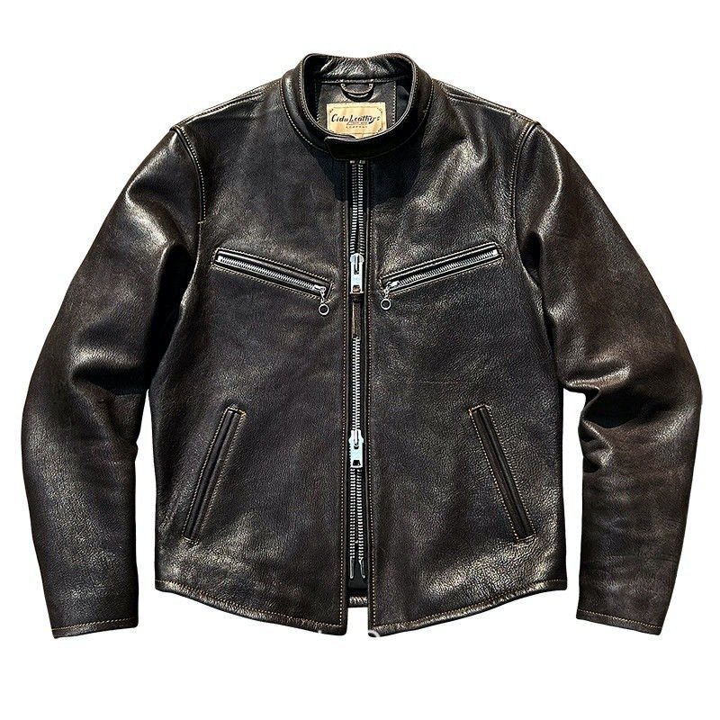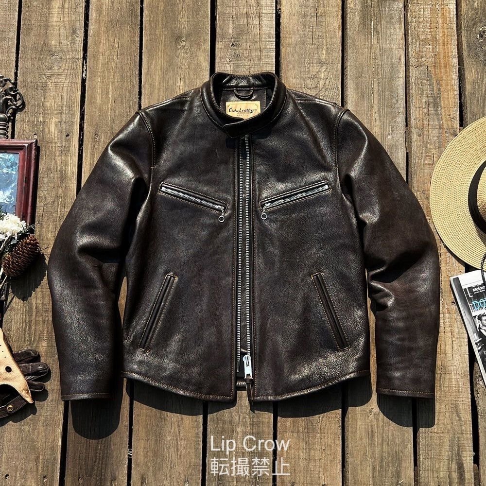 新作 ビンテージ復刻 レザー シングルライダース 今シーズン カフェレーサータイプ ゴート ジャケット S~3XL 山羊革ジャン 未使用
