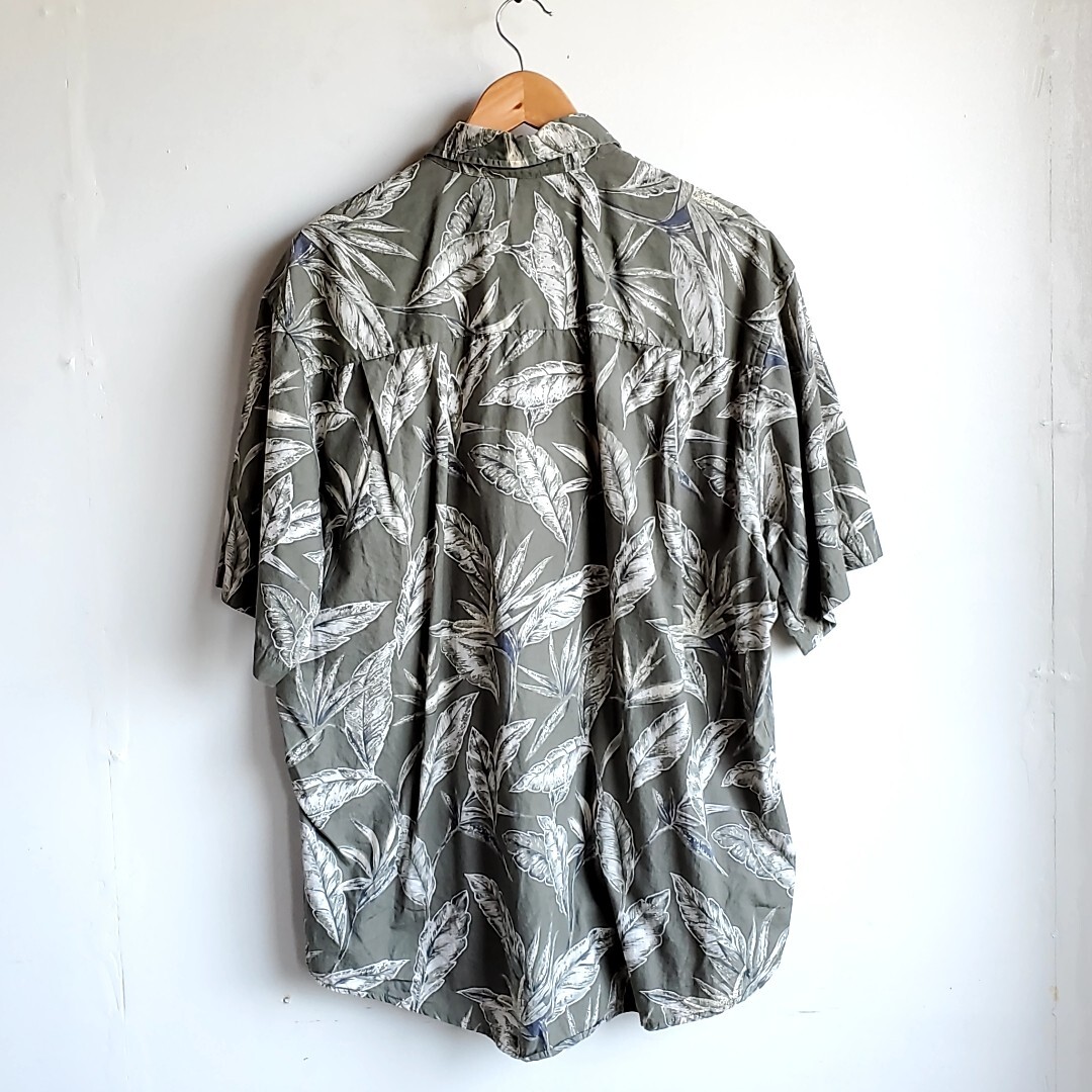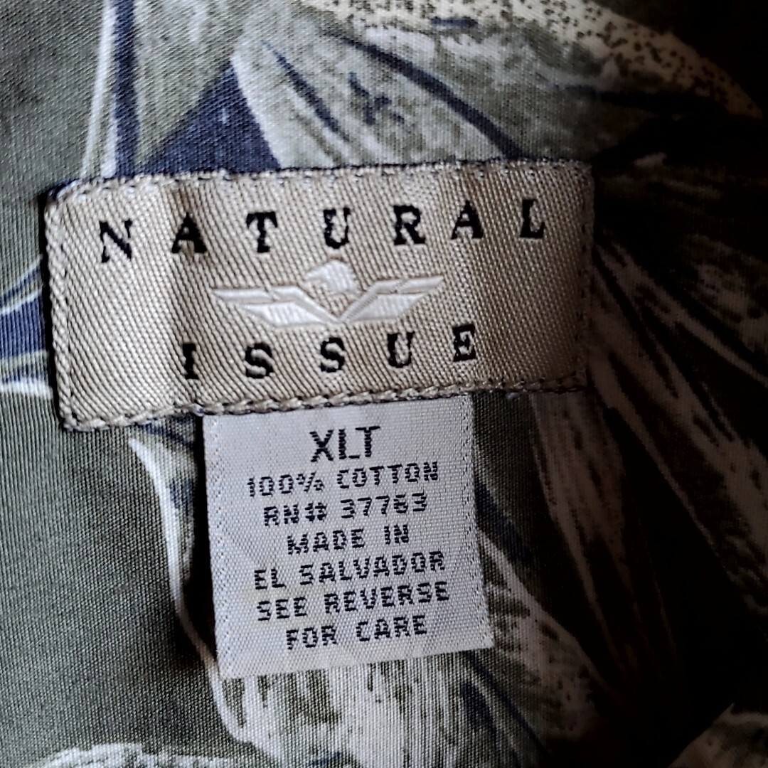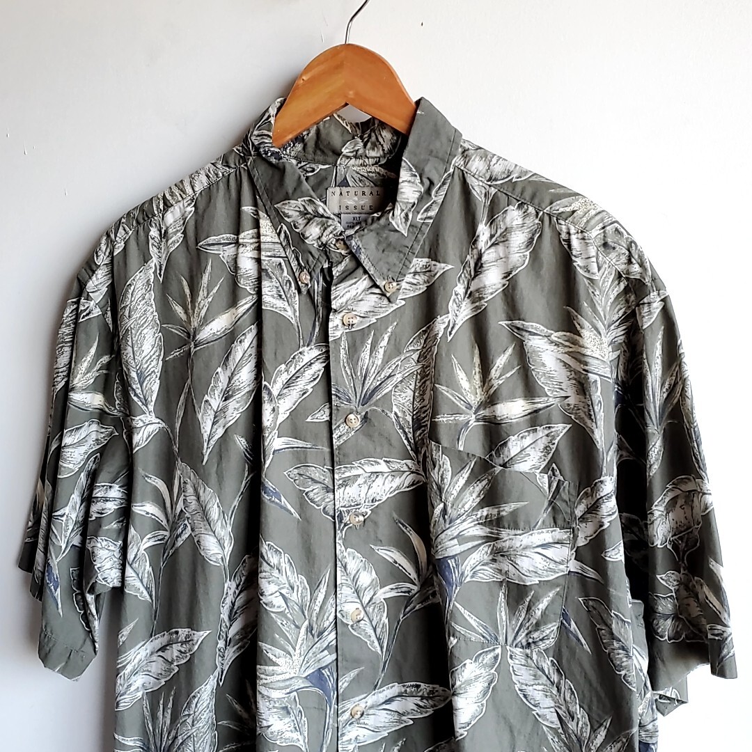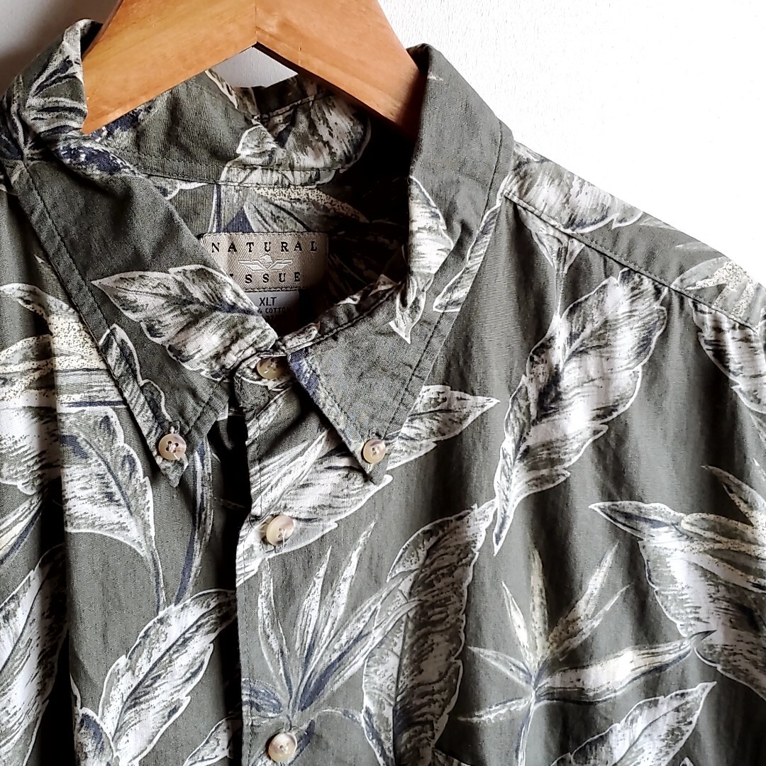 654◆NATURAL ISSUE ボタンダウン コットン 半袖シャツ sizeXLT 緑 グリーン系 リーフモチーフ 中古 USED 古着