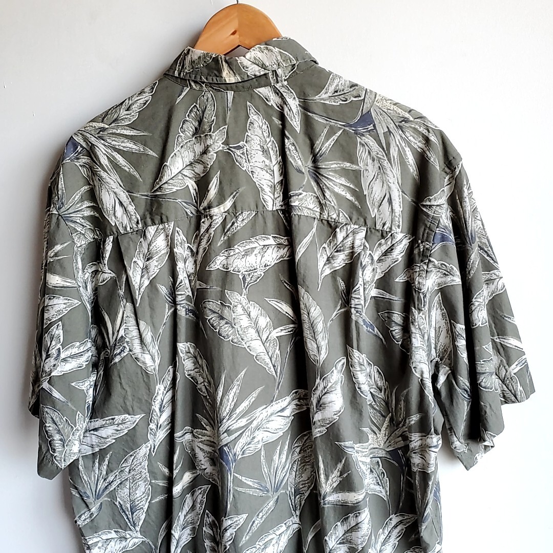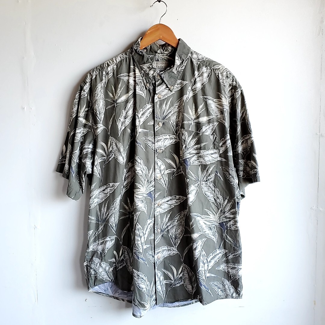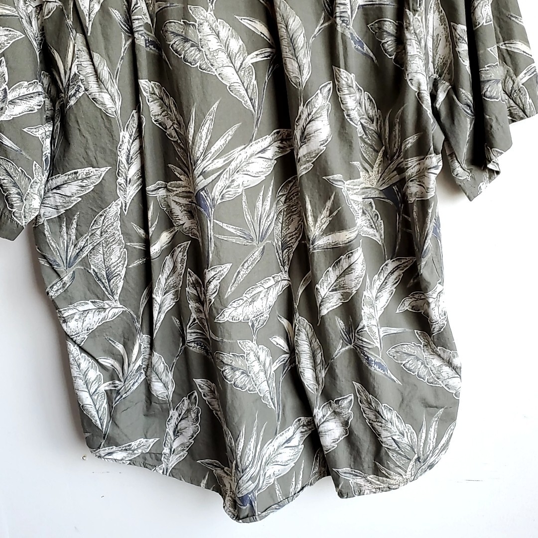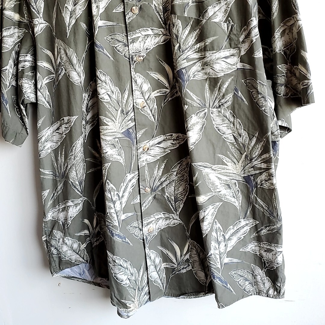 654◆NATURAL ISSUE ボタンダウン コットン 半袖シャツ sizeXLT 緑 グリーン系 リーフモチーフ 中古 USED 古着