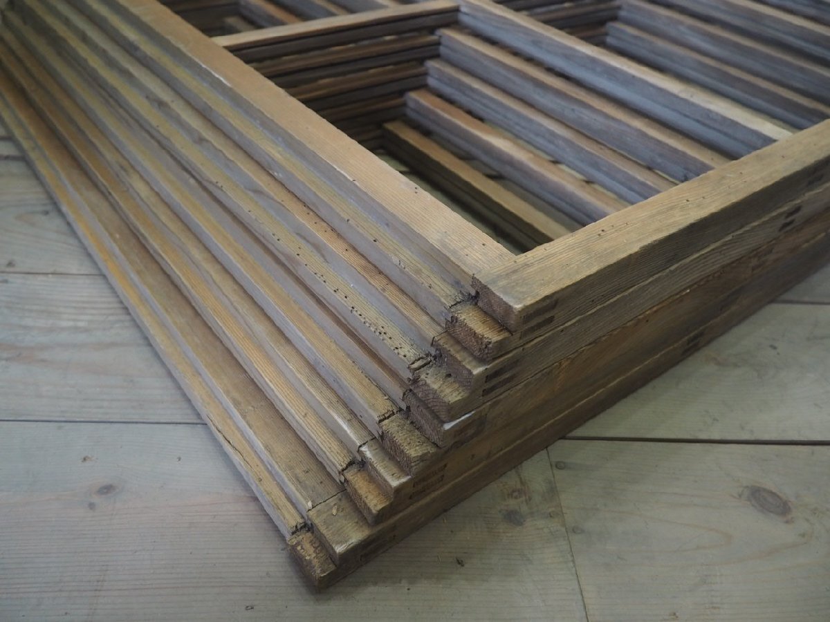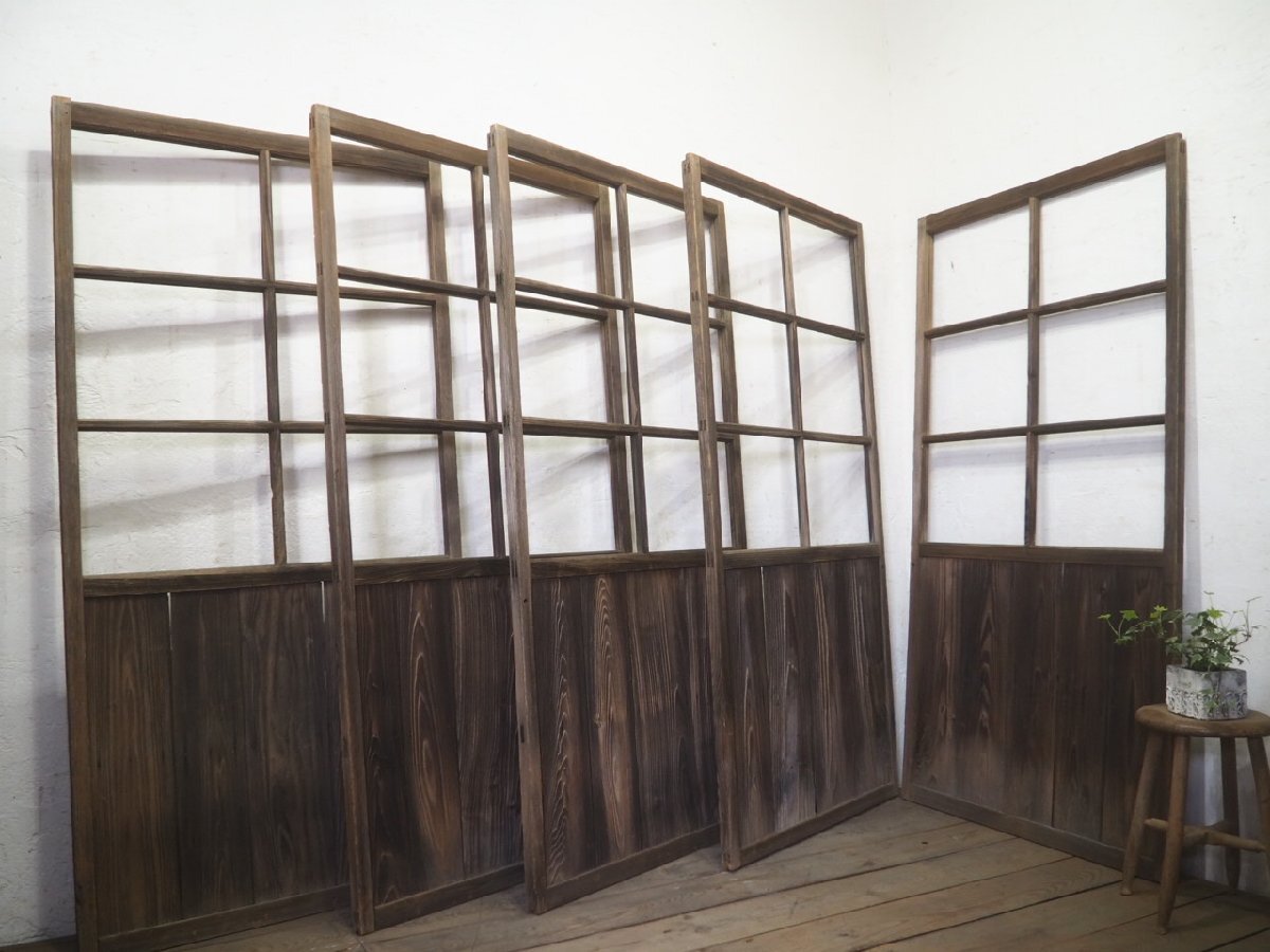商品情報 | ■商品詳細■ レトロな古い木製引き戸、5枚セットです。 長年使い込まれた味わいのある品です。 ガラスはありませんが、ガラス用の溝がある造りです。 一般のご家庭はもちろん、レトロな店舗什器にもお勧めです。 経年の傷や欠け、染みやヒビ、割れや木枠に欠け、 板部分に反りや隙間、小穴や古い虫食い、落としきれない汚れ等あります。 引き戸としての使用には問題ありませんが、 今回は素材として出品させて頂きます。 実用の際はメンテナンス前提にお願いします。 古い物とご理解いただければ幸いです。 ご不明な点などありましたら、質問欄にてお願いします。 ■サイズ■ 全体(最大値) (H 176cm×W 87,5cm×D 3cm)×5枚 竪框 3,5cm 鴨居に入る部分 1,5cm 多少の誤差はご了承下さい。 ドライバー1人での配達になりますので、場合(通路が狭い等)によっては 荷運びのお手伝いをお願いすることがあります。 商品は玄関先までの配達になります。 |