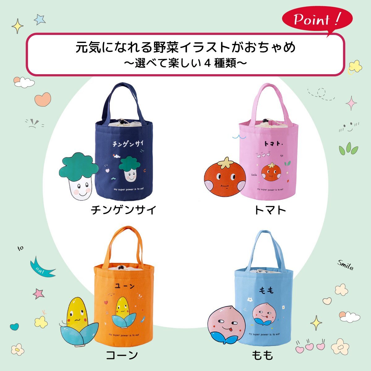 【ランチバッグ 保温 おかしな野菜たち】