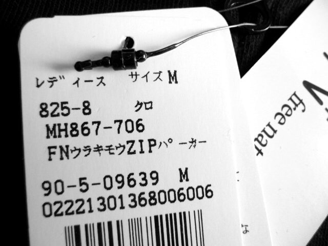 新品 MAC HOUSE マックハウス 裏起毛 フルジップ パーカー スウェット 黒 M レディース ジップパーカー