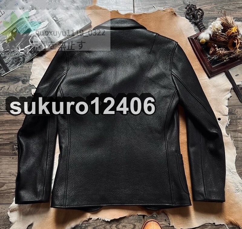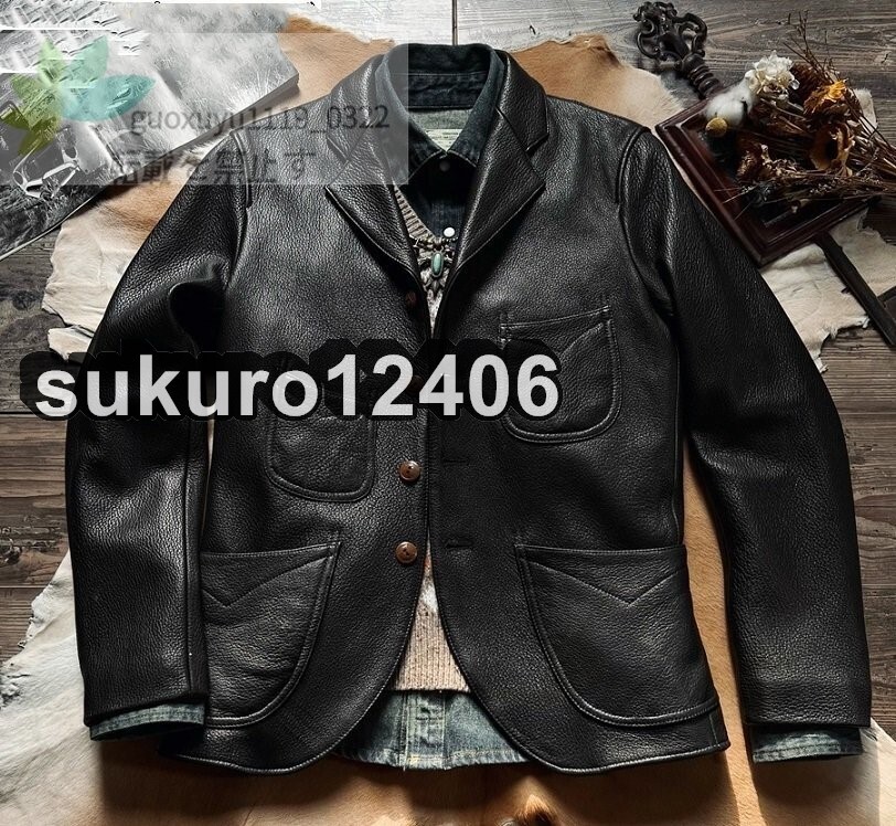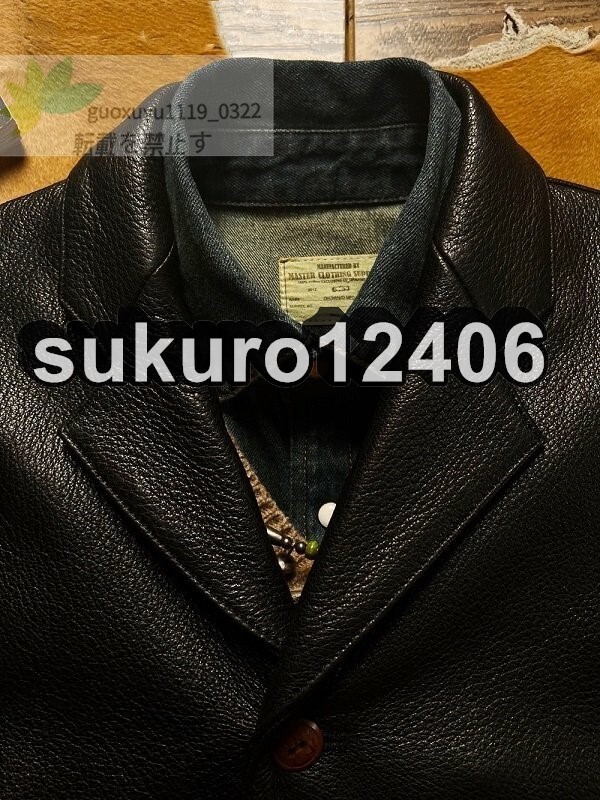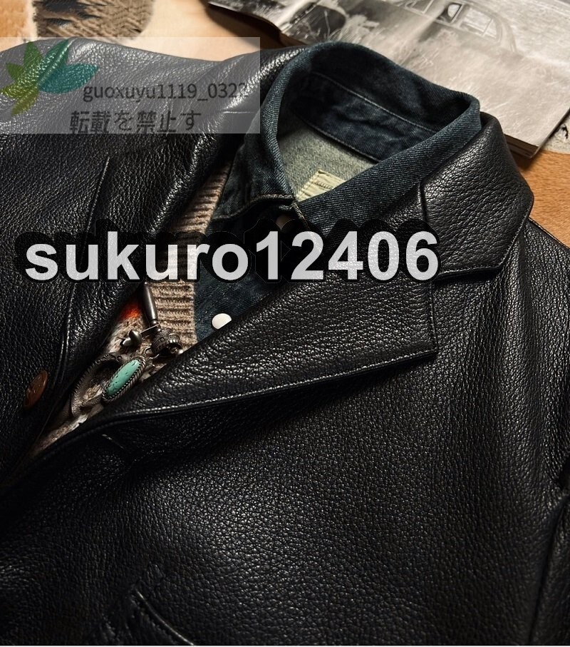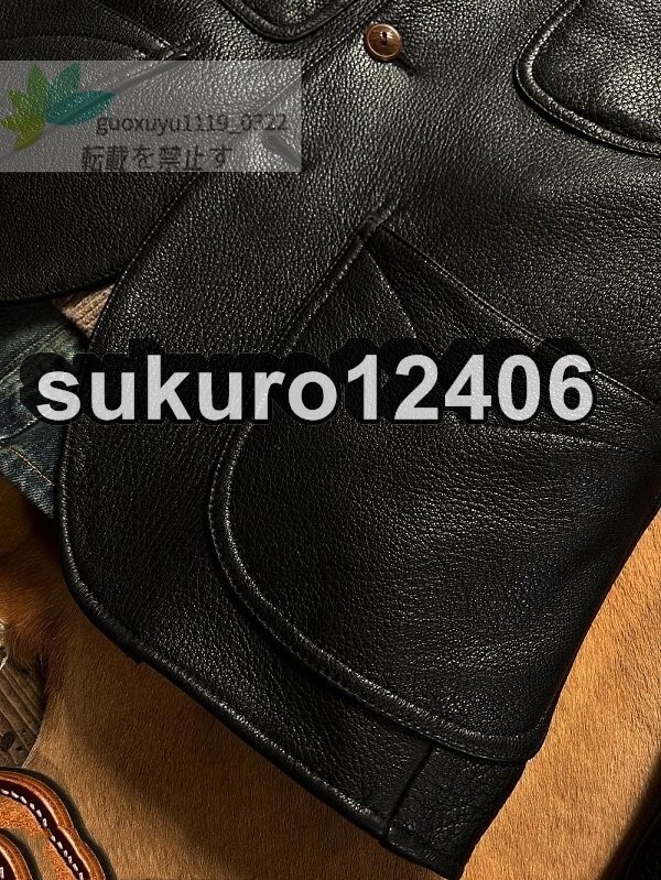 1.3mm ディアスキン ダリウススタイル テーラード・サックコート ブラック XL(40) サイズ選択可 レザージャケット 鹿革