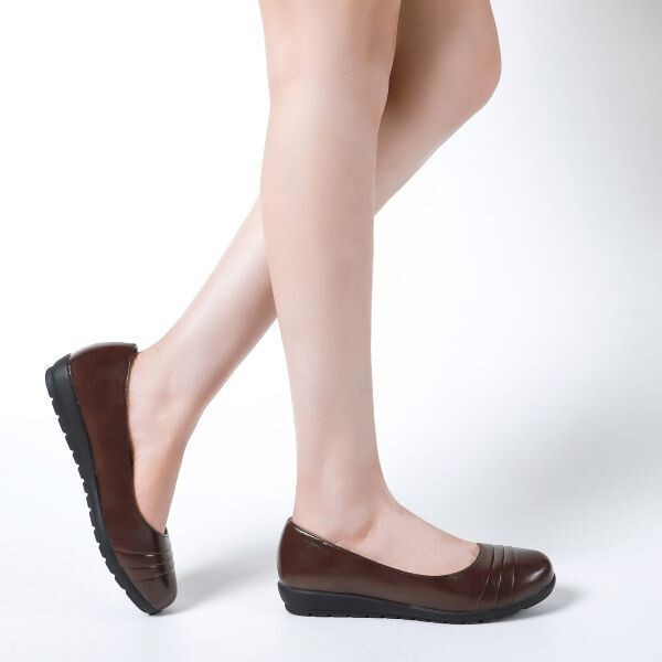 20445 アウトレット レディース フラットパンプス ブラウン スムース 24.5cm ローヒール パンプス ラウンドトゥ