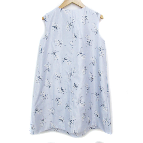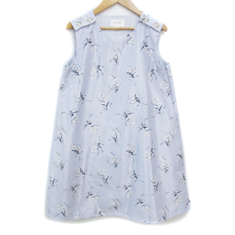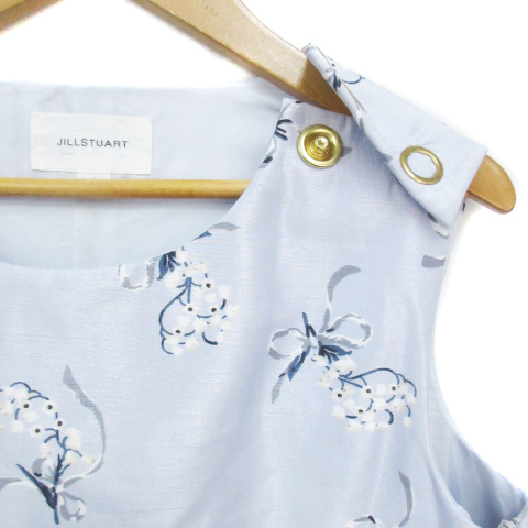ジルバイジルスチュアート フレアワンピース ひざ丈 ノースリーブ ラウンドネック 花柄 マルチカラー S 水色 白 レディース
