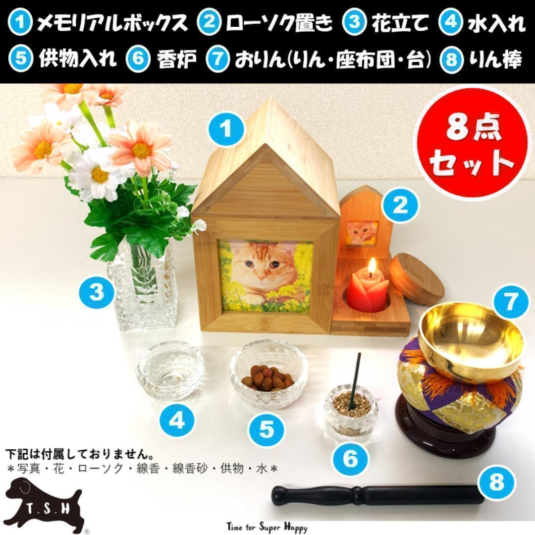 ペット仏壇 【S】メモリアルボックス 8点セット 仏具 おりん クリスタルガラス