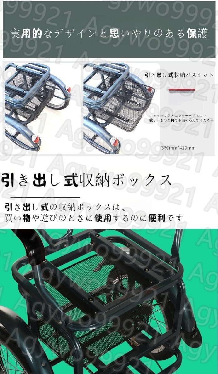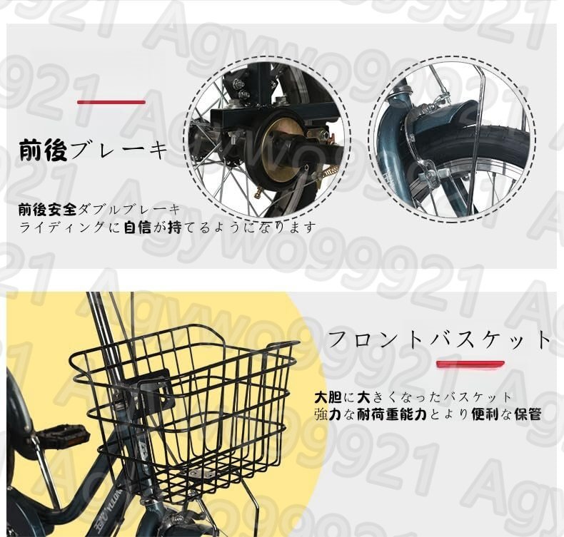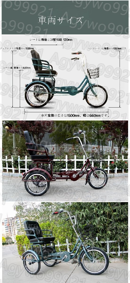 大きなバックバスケットを持つこの自転車は、多くの野菜、果物などを保持できます。ピクニック、ショッピング、エンターテイメントなどに最適 パラメータ: 利点:後部座席、ストレートハンドル サイズ:シートは前後120mm調整可能 バックレストは地面から1030mm ハンドルバーは地面から1050mmです シート高 地面から630mm 車両全体の長さは1500mm、幅は660mmです。 主な材料:高強度鋼 ハンドルバー:厚いアルミ合金 総重量:28 kg 負荷容量:100 kg 含む: 1×大人の三輪車 1インストールツールのセット