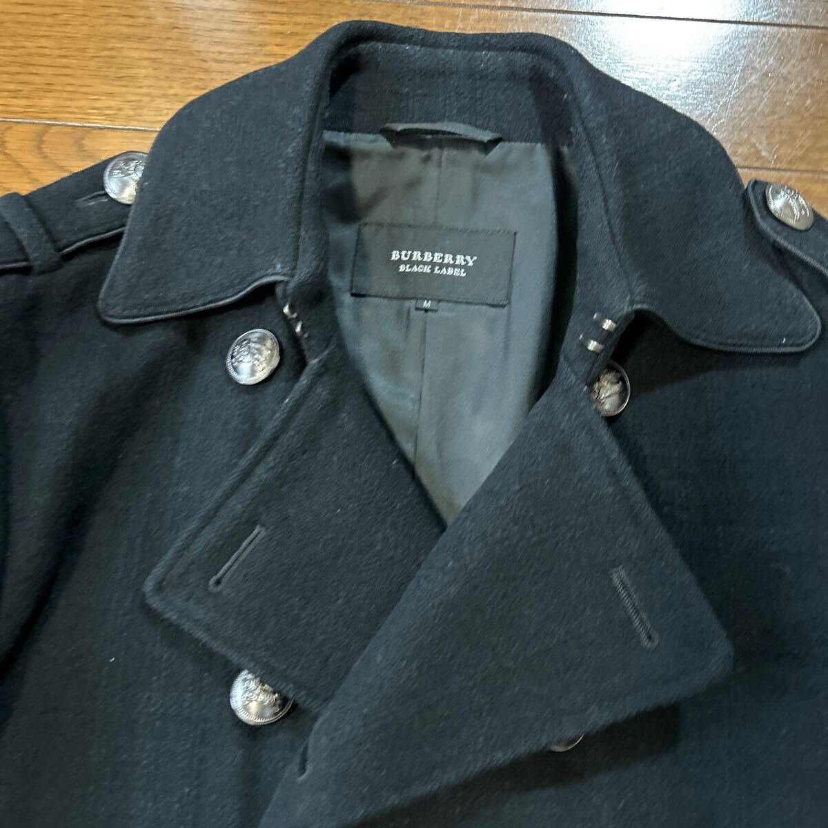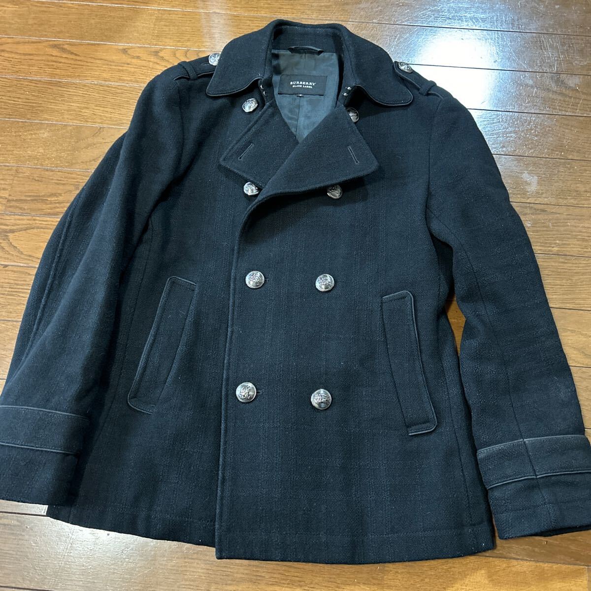 バーバリーブラックレーベル☆メタルボタン厚手羊毛ピーコート
