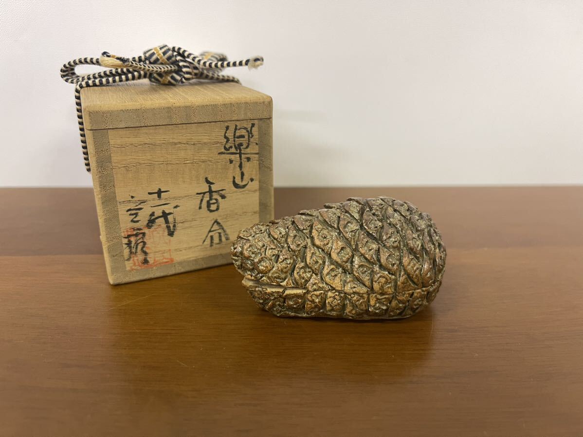 【未使用】 楽山焼 十一代 長岡住右衛門 長岡空権作 松笠香合 松毬香合 出雲焼 茶道具