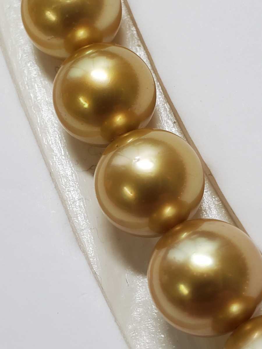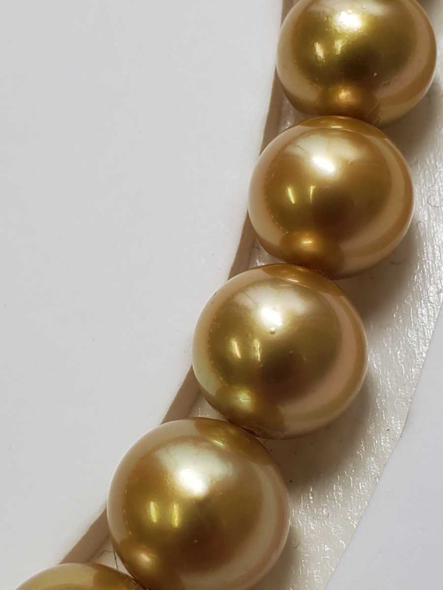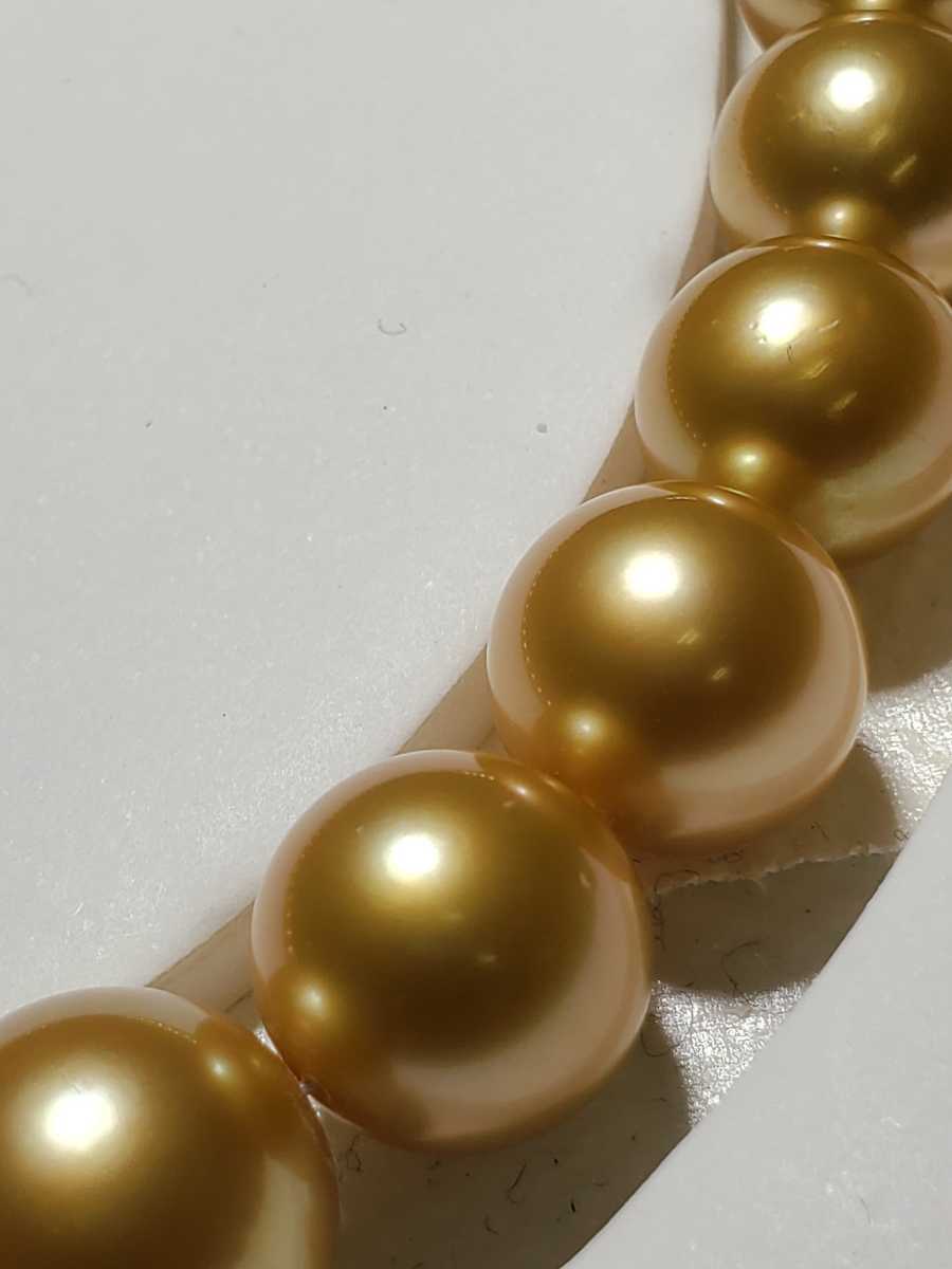 明るいゴールドというよりは深く濃いめのゴールド色、、色だけでなくテリも素晴らしく、艶々として珠肌の具合も最高です。