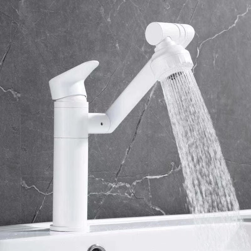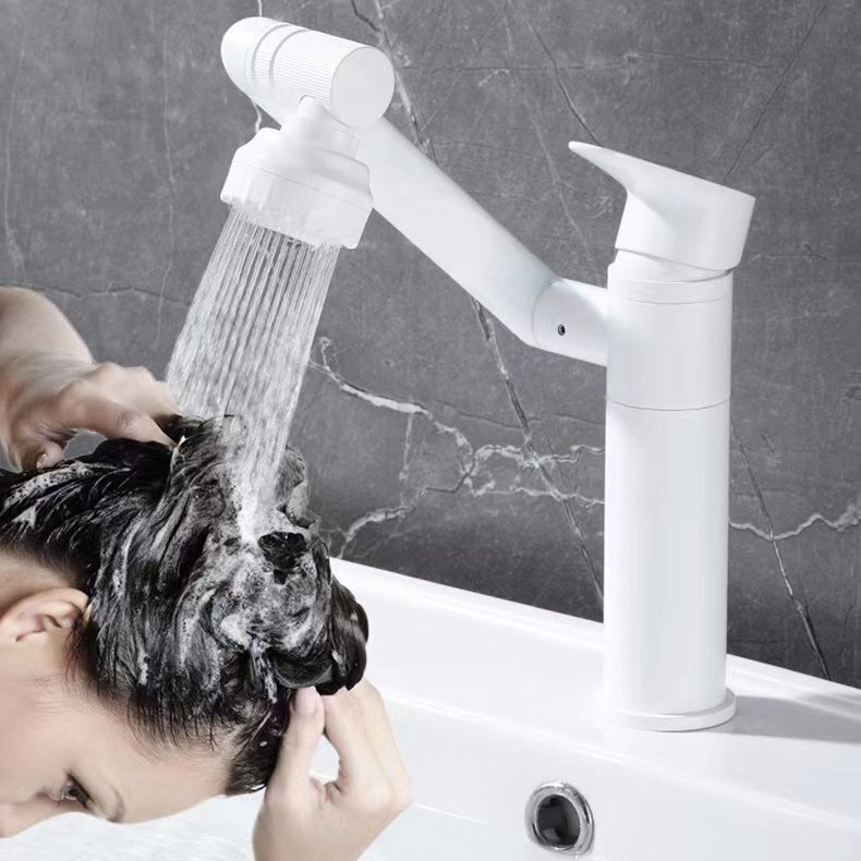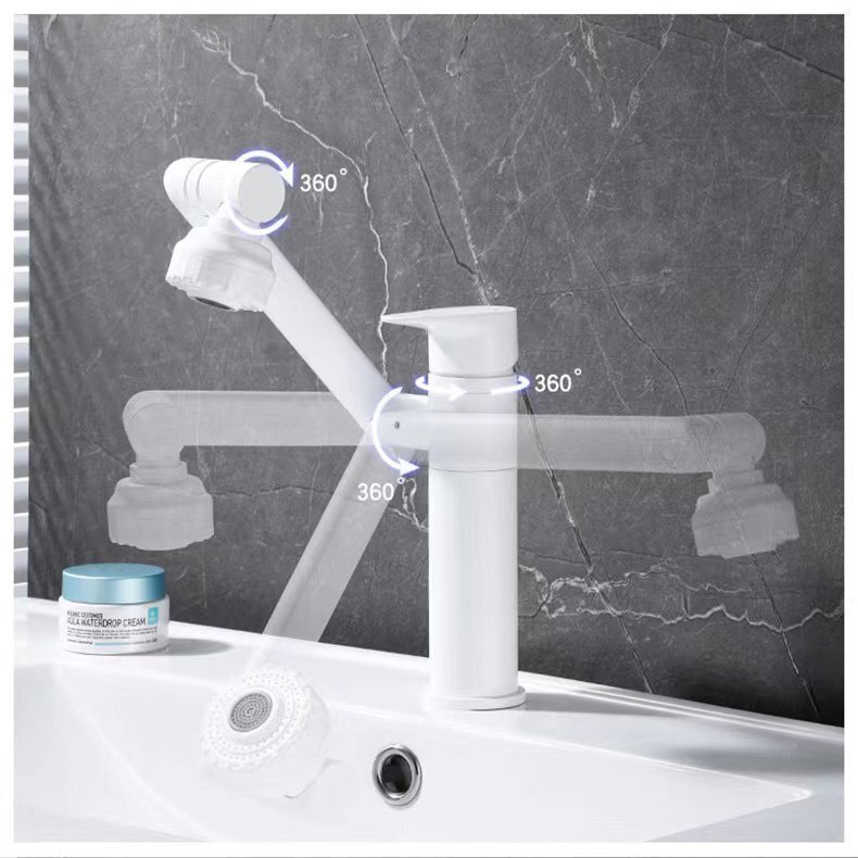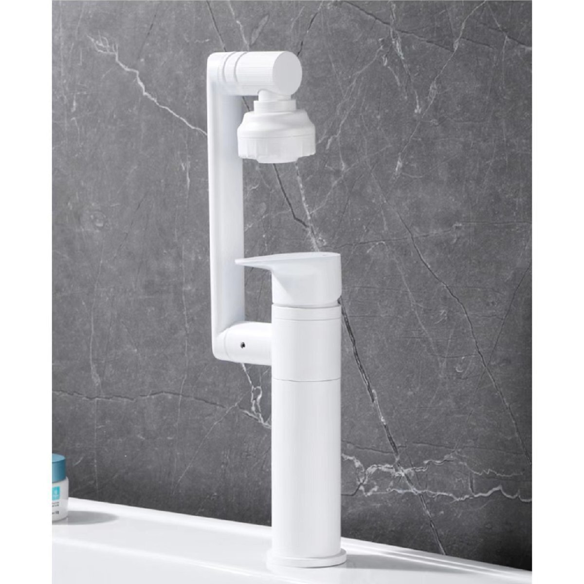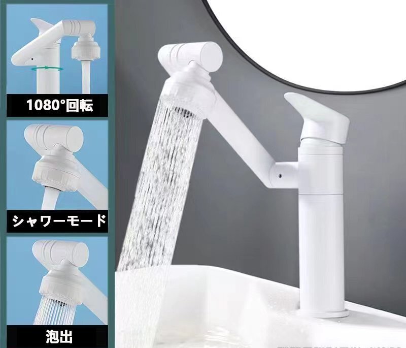 蛇口 混合水栓 1080°回転 冷熱水 上向き出水 左右変更 60cmホース付 トイレ シャワーモード 立水栓 洗面ボウル バス ホワイト