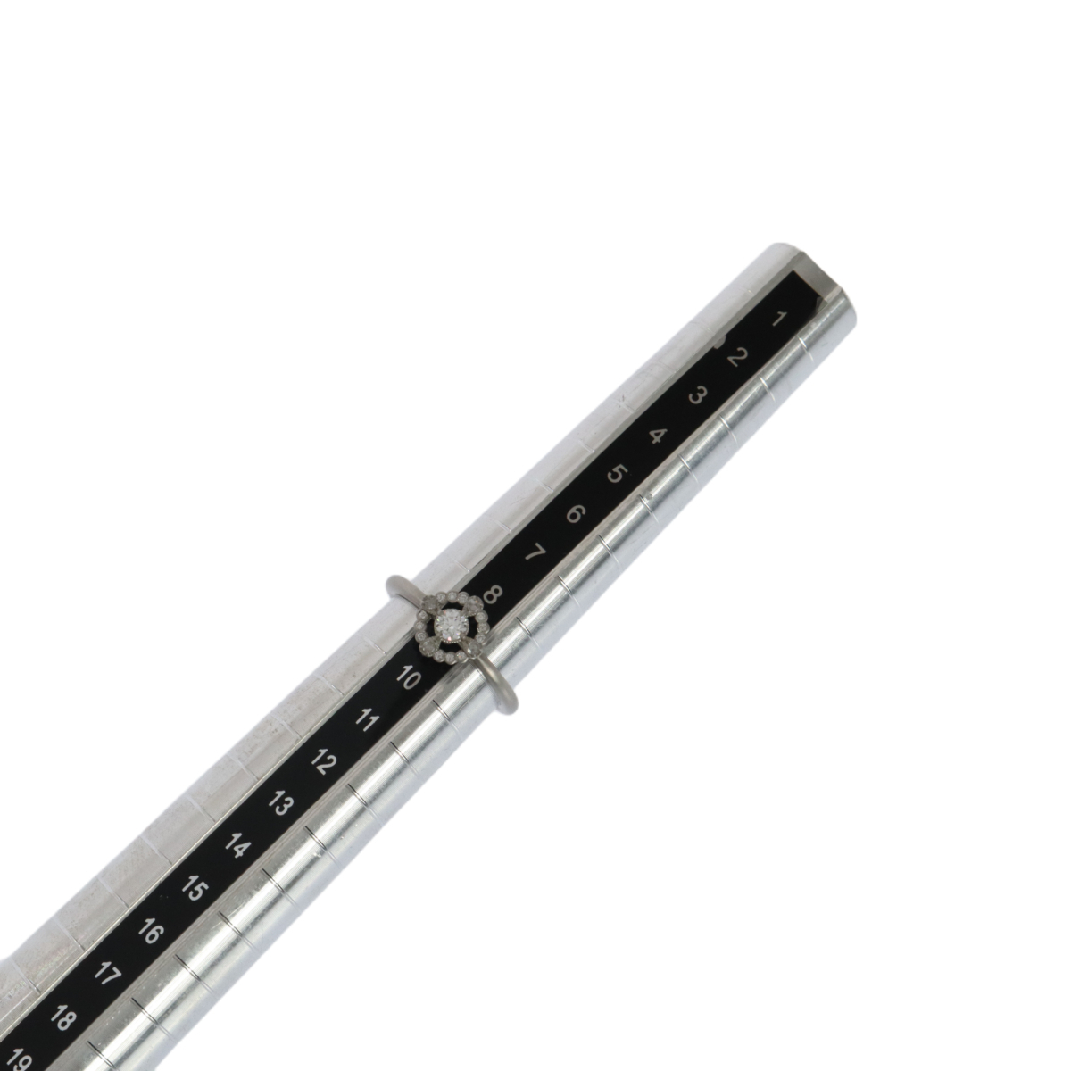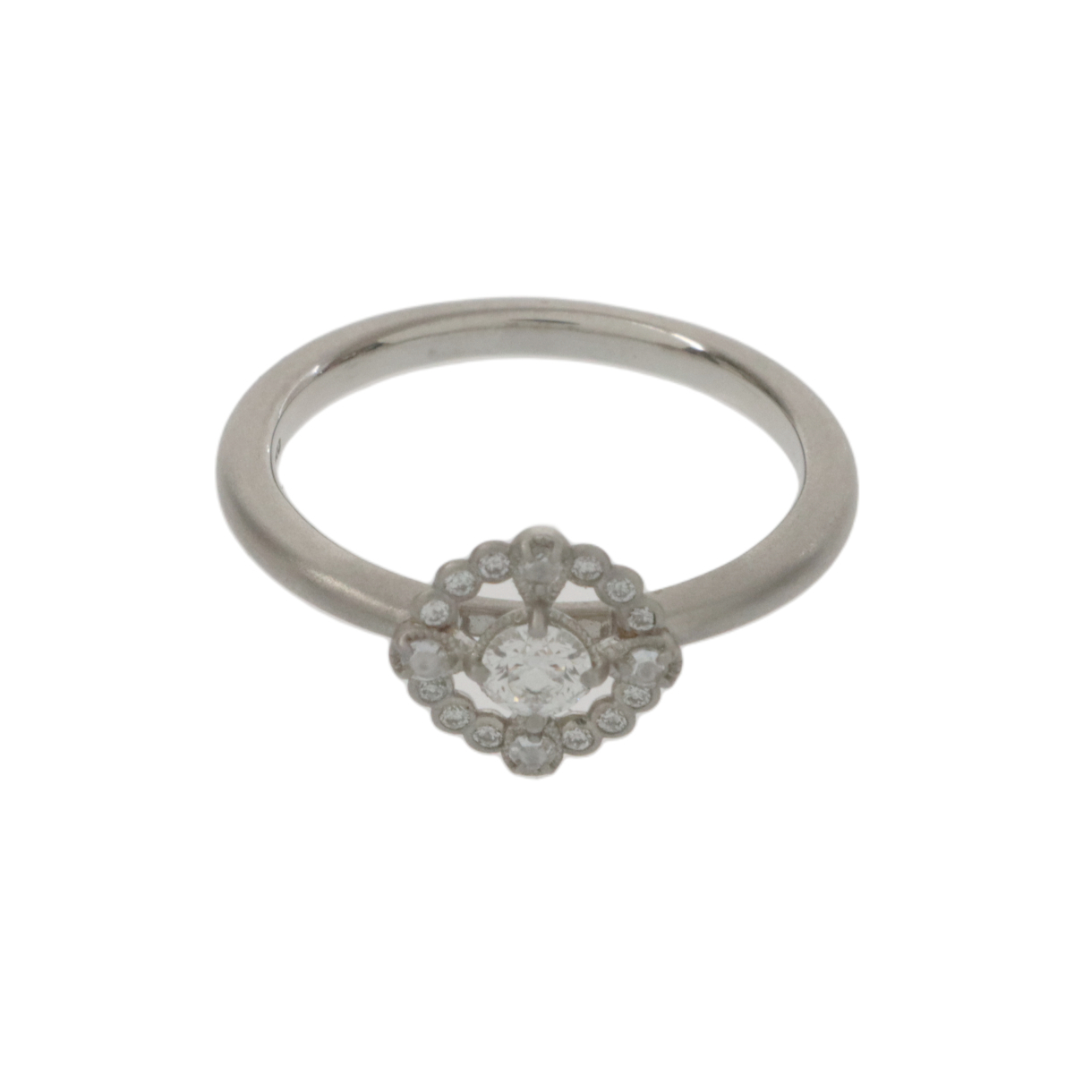 | サイズ | 約9号 石目:ダイヤ0.111(中石)/0.10(メレD)//0.07(ローズカットD)ct 幅:約8.0×8.2mm 脇幅:約1.45~1.8mm 重さ:約3.1g |