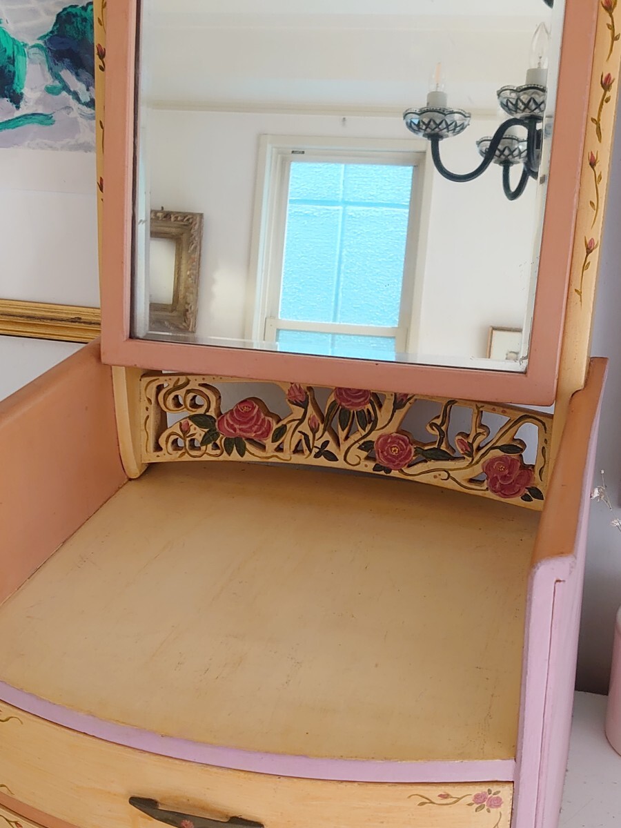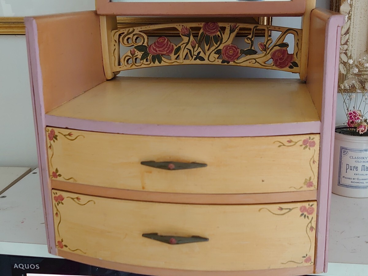 レトロで可愛いアイテムが好きなので、お部屋の雰囲気に合わせてハンドペイントでアンティーク風にリメイクして使用しておりました。。