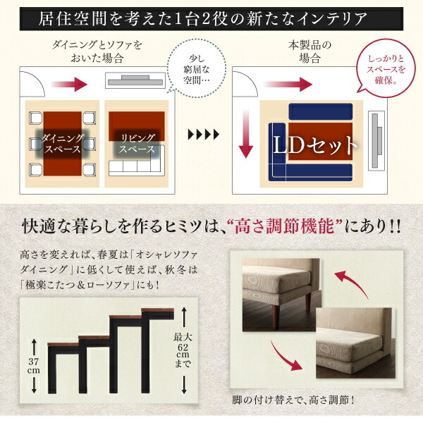 ベンチ ダイニング 年中快適 こたつもソファも高さ調節 リビングダイニングシリーズ ベンチ単品 2P