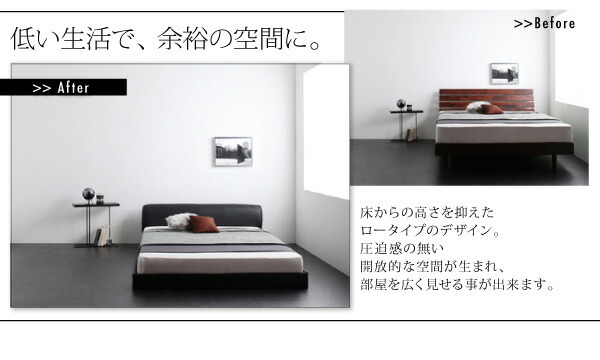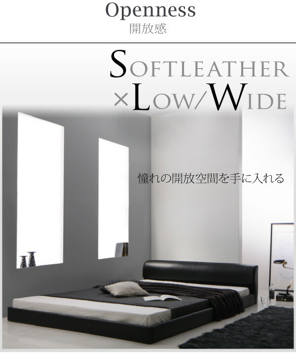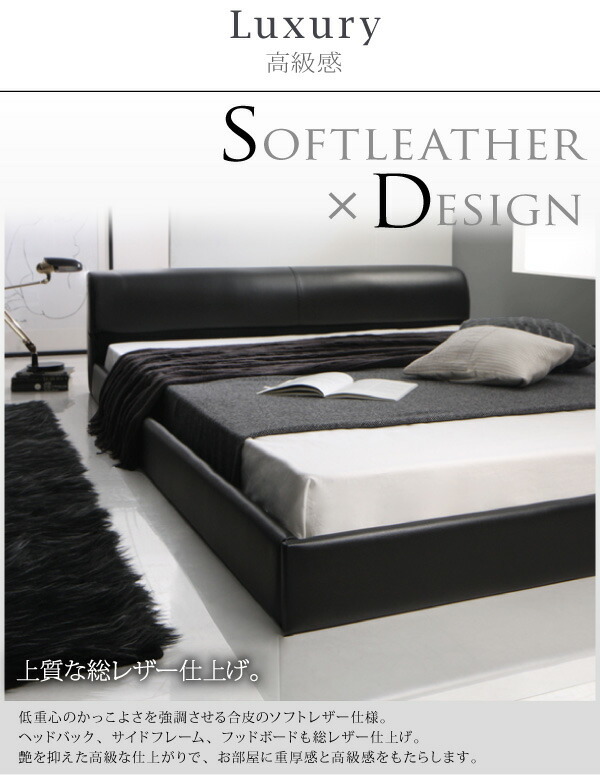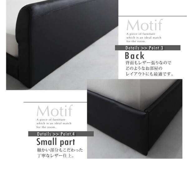 組立設置付き ソフトレザーフロアベッド Motif モティフ マルチラススーパースプリングマットレス付き セミダブル【フレームカラー:ブラック】です。