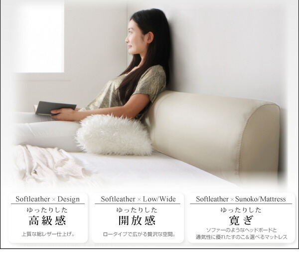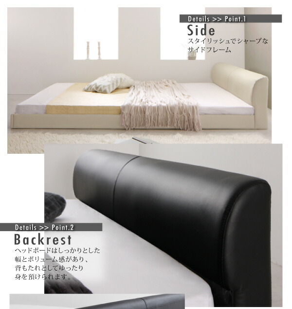 ソフトレザーフロアベッド マルチラススーパースプリングマットレス付き セミダブル 組立設置付