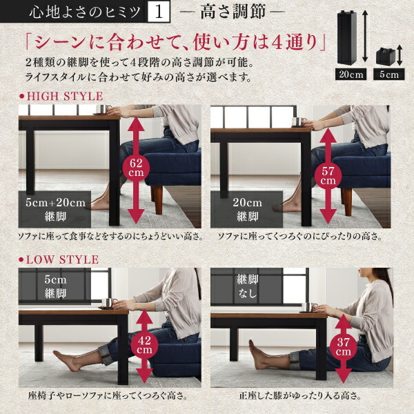 ベンチ ダイニング 年中快適 こたつもソファも高さ調節 リビングダイニング ベンチ単品 2P