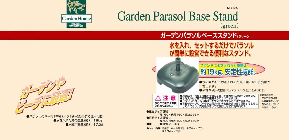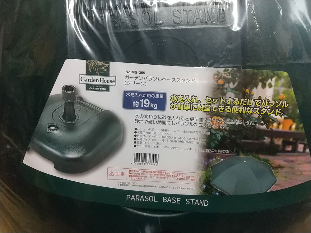 『☆未使用☆CAPTAIN STAG ガーデンパラソルベーススタンド グリーン MG-355』の出品です。
