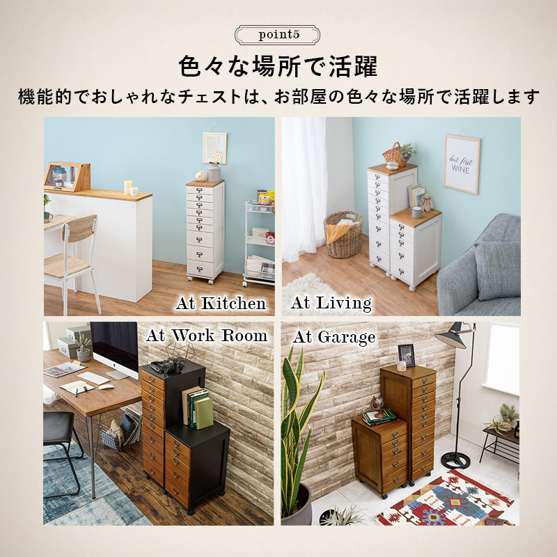 キャスター付きで移動も楽な多段チェスト。