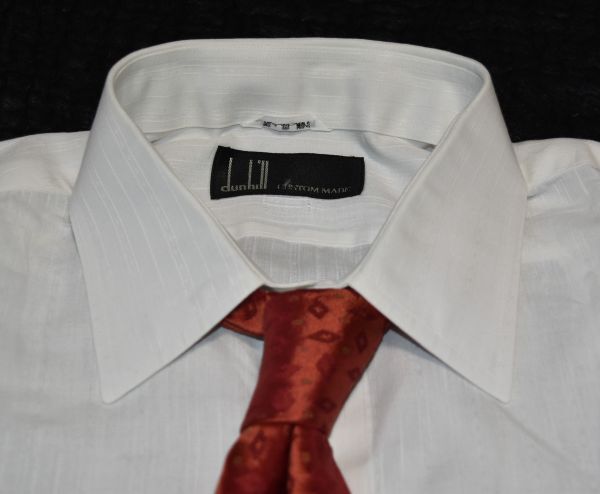 ★ダンヒル★綿麻素材の着心地の良い白色の長袖シャツ M・40