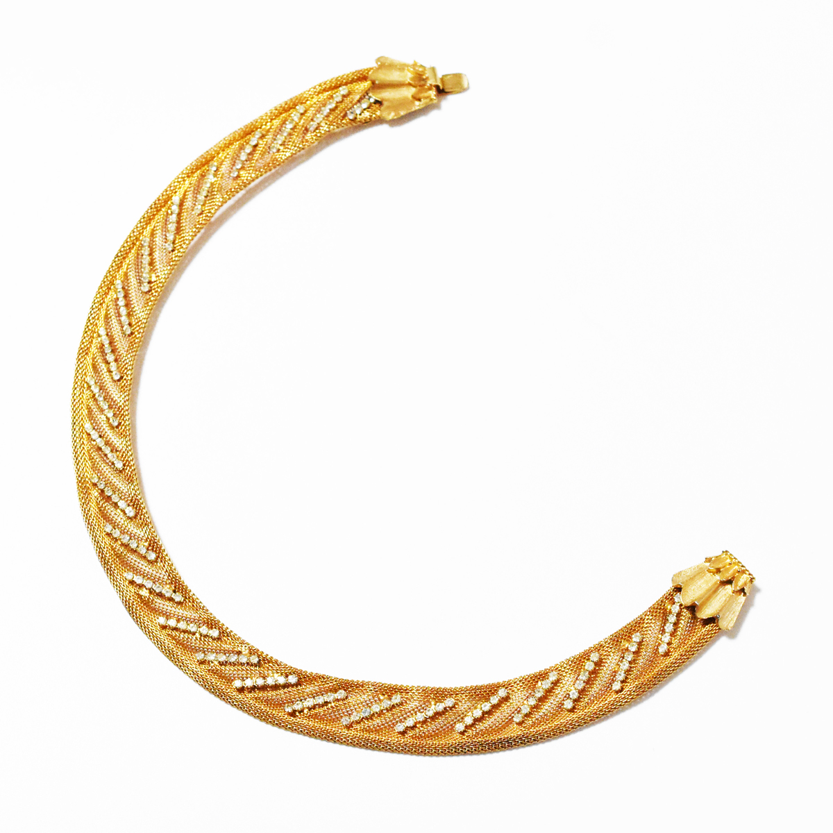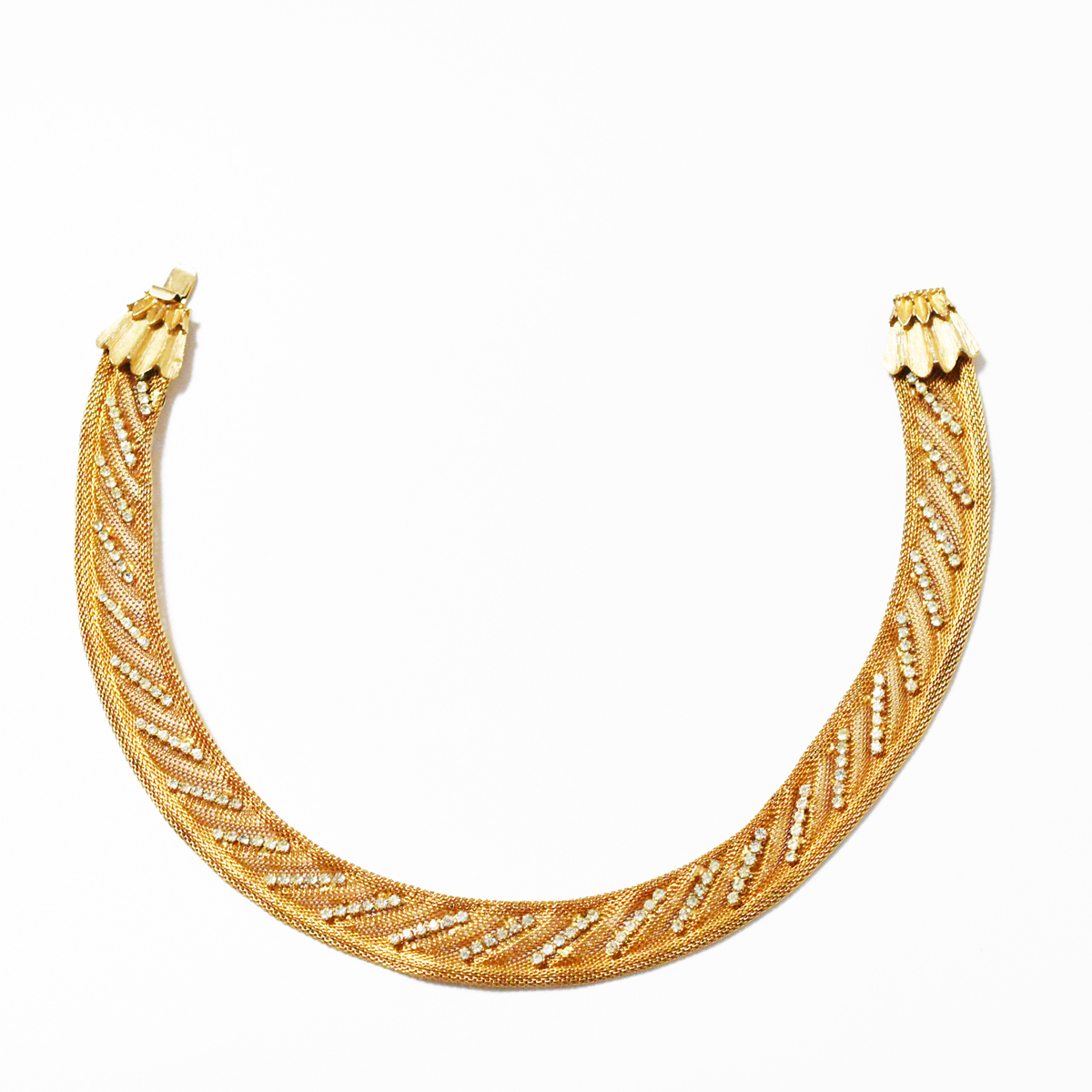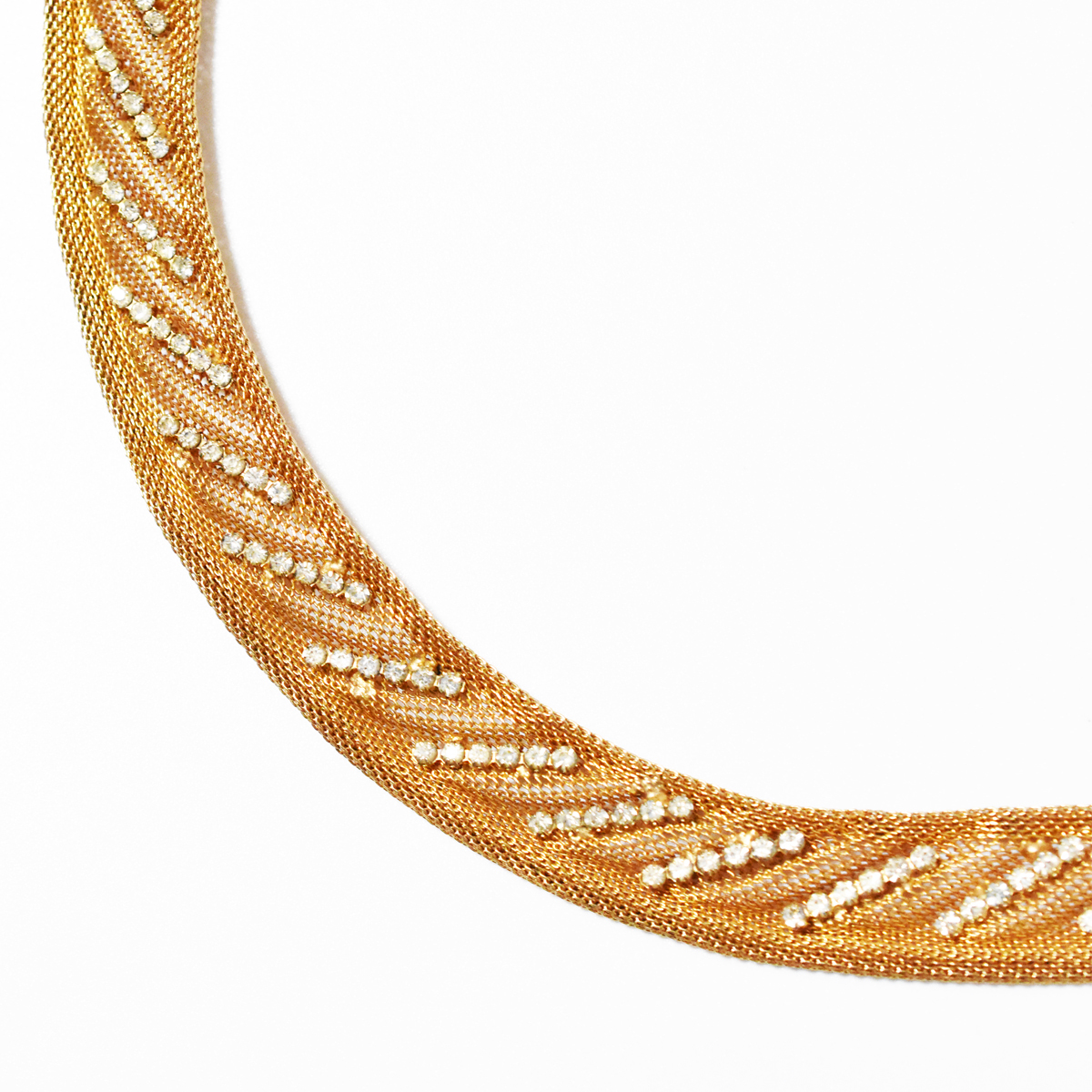 幅の広いメッシュメタル素材にクリアラインストーンが輝くインパクトあるヴィンテージチョーカー。